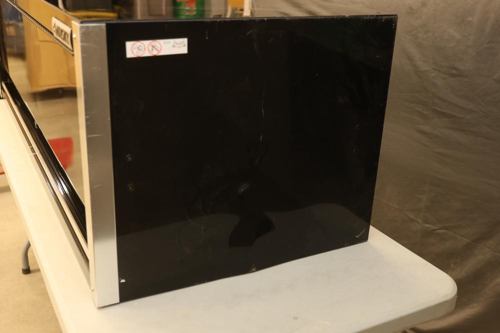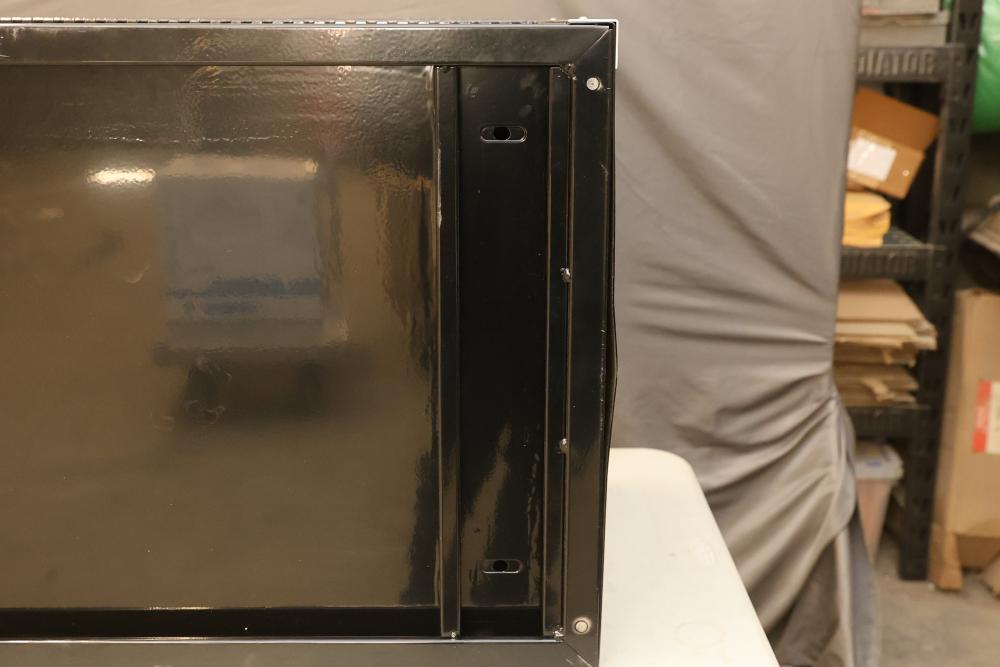 Husky HPR063TLOCKERBL black tool locker with visible scratches and dents featuring a sturdy construction with a secure locking mechanism. Model #HPR063TLOCKERBL. Pickup only.