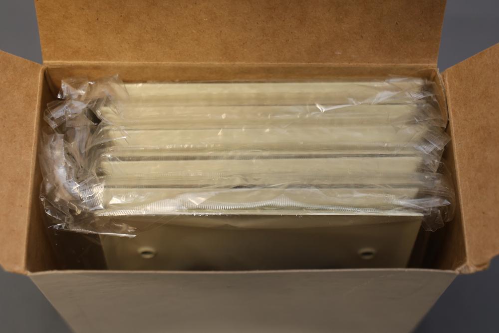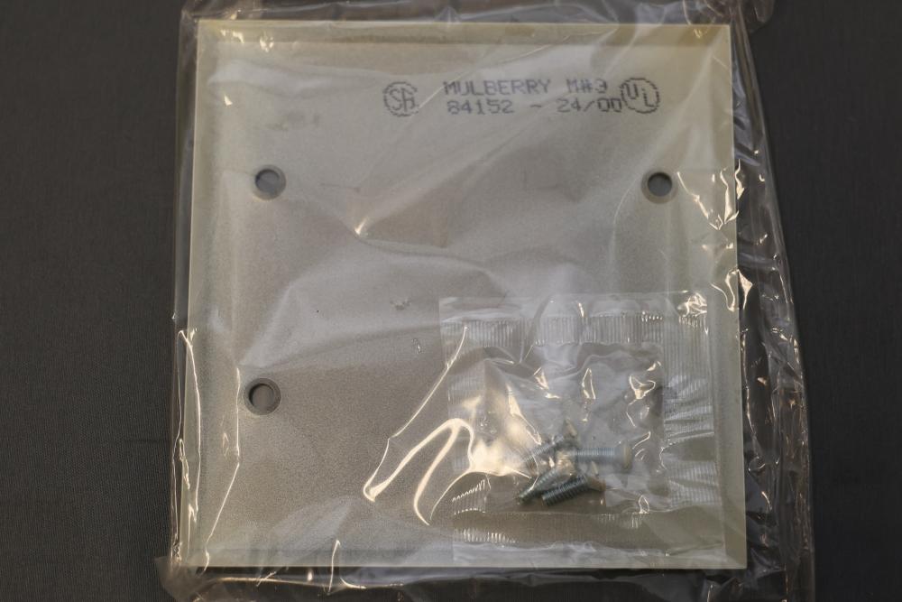 Mulberry 84152 2 Gang Blank Metal Ivory Wall Plate - 104 Total Units. Includes 10 cases of 10 units each plus 4 loose units for a total of 104. Made of durable metal with an ivory finish. Smooth design with mounting screws included. Pickup only.