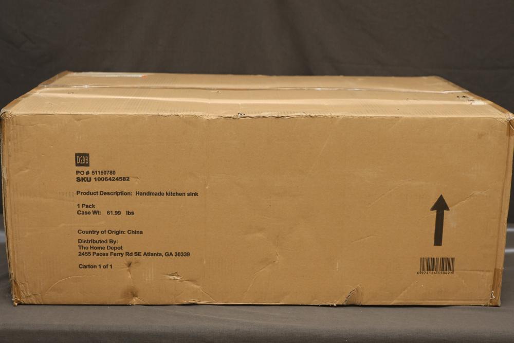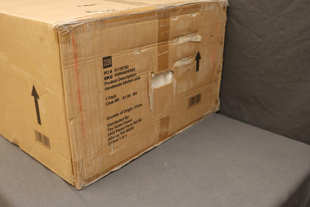 Glacier Bay 36 Inch Undermount Double Bowl 18 Gauge Gunmetal Black Stainless Steel Workstation Kitchen Sink with Spring Neck Faucet, Model ACS3622A2Q-FW. Includes workstation sink, spring neck faucet, and additional accessories. The item is securely packaged in its original box. Box shows visible wear but contents are protected. Pickup only.