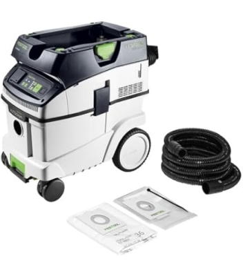 Festool Dust Extractor CT 48 EI AC HEPA CLEANTEC 577876. Features include a 1200 W motor with HEPA filtration for efficient dust extraction. Includes the unit, hose, and dust bags. Box shows signs of wear, but the extractor itself is in good condition. Pickup only.