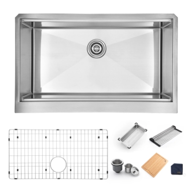 Luxier DFS33-16R Farmhouse Apron-Front 16 Gauge Stainless Steel 33 Inch Single Bowl Workstation Kitchen Sink with Accessories. Includes bottom grid, colander, sink strainer, bamboo cutting board, multi-purpose roll-up drying rack, and micro-fiber towel. Pickup only.