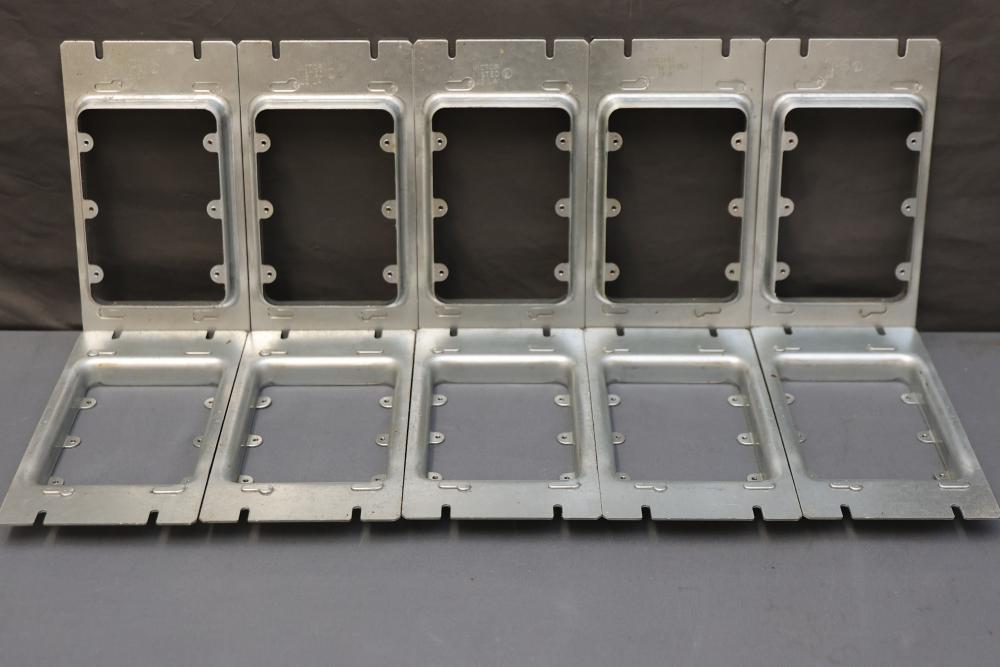 3 Gang Three Device Box Cover Adapter Raised 3/4 of an Inch Deep - Quantity of 10. Designed for use with corresponding electrical boxes. Each adapter is crafted from durable metal and features precision cuts for secure installation. Quantity includes a total of 10 adapters. Pickup only.
