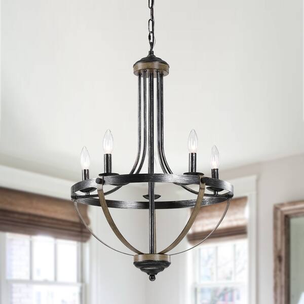 Parrot Uncle Pendant Lamp (D2262-5BZ110V). This pendant lamp features a stylish design with multiple light sockets and a black-bronze finish. The fixture is new and comes in its original box with parts securely packaged. The box is labeled with model details, ensuring authenticity. Pickup only.