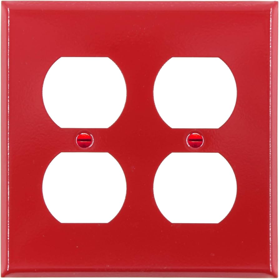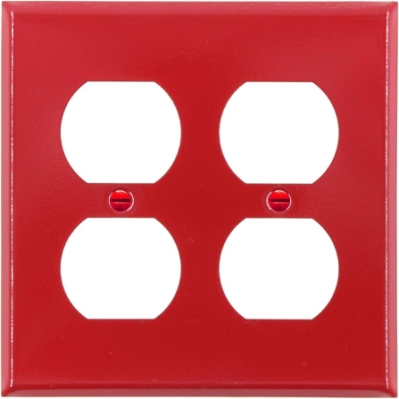 Mulberry 51102 Metal Duplex Faceplate, 2 Gang, in Red - 6 Cases of 10 - 60 Total. The faceplates are designed for smooth installations, include mounting screws, and are suitable for duplex outlets. Packed in protective envelopes within each case for safe handling. Pickup only.