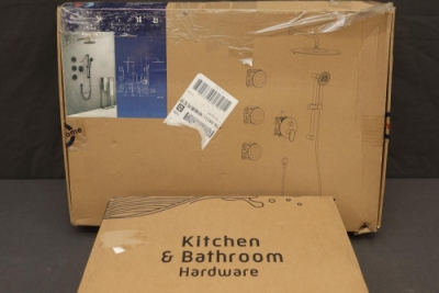 Innovative Technologies Shower System in Matte Black with Cobbe Shower System. Includes shower head, hand shower, slide bar, shower arms, hoses, valve trims, and lever handles. All components carefully packaged in original boxes with instructions for installation. Sleek matte black finish for a modern look. Pickup only.