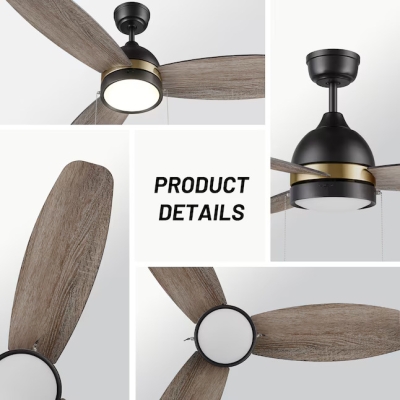 Carro CFP523Q5L 52 Inch Ceiling Fan, featuring a sleek design with durable materials and equipped with a built-in LED light and remote control. The box includes the fan blades, installation instructions, and all necessary components for setup. Pickup only.