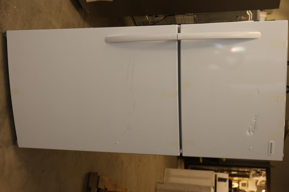 Frigidaire GRFS2853AD 36 Inch French Door Refrigerator with 27.8 Cubic Ft Capacity. The unit features a spacious interior, water and ice dispenser, and multiple clear storage compartments. Wheels on the unit seem to be broken, and the condition may vary. See photos for details. Pickup only.
