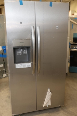 Frigidaire FRSS2633AS 36 inch Freestanding Side by Side Refrigerator with a 25.6 cubic feet capacity. Includes an external dispenser for water, cubed, and crushed ice. Condition may vary, see photos for details. Pickup only.