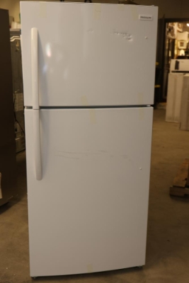 Frigidaire FFTR1835VW 30 inch Top Freezer Refrigerator, Garage Ready, Depth of 18.33 cubic feet. The refrigerator features a top freezer design, spacious interior, and garage-ready functionality. Condition may vary, refer to photos for details. Pickup only.