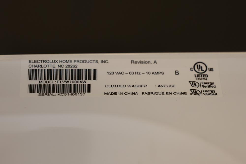 Frigidaire FLVW7000AW 25 Inch Top Load Washer with 4.1 cubic ft capacity and 8 wash cycles. Features include auto-sensing technology, energy efficiency, and multiple washing options. Condition may vary, see photos for details. Pickup only.