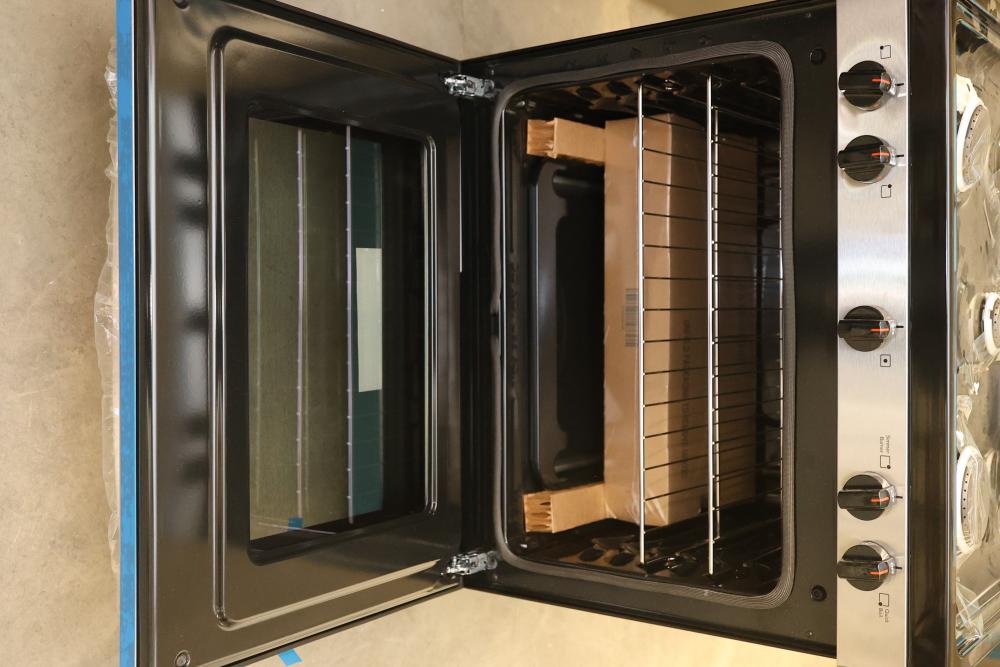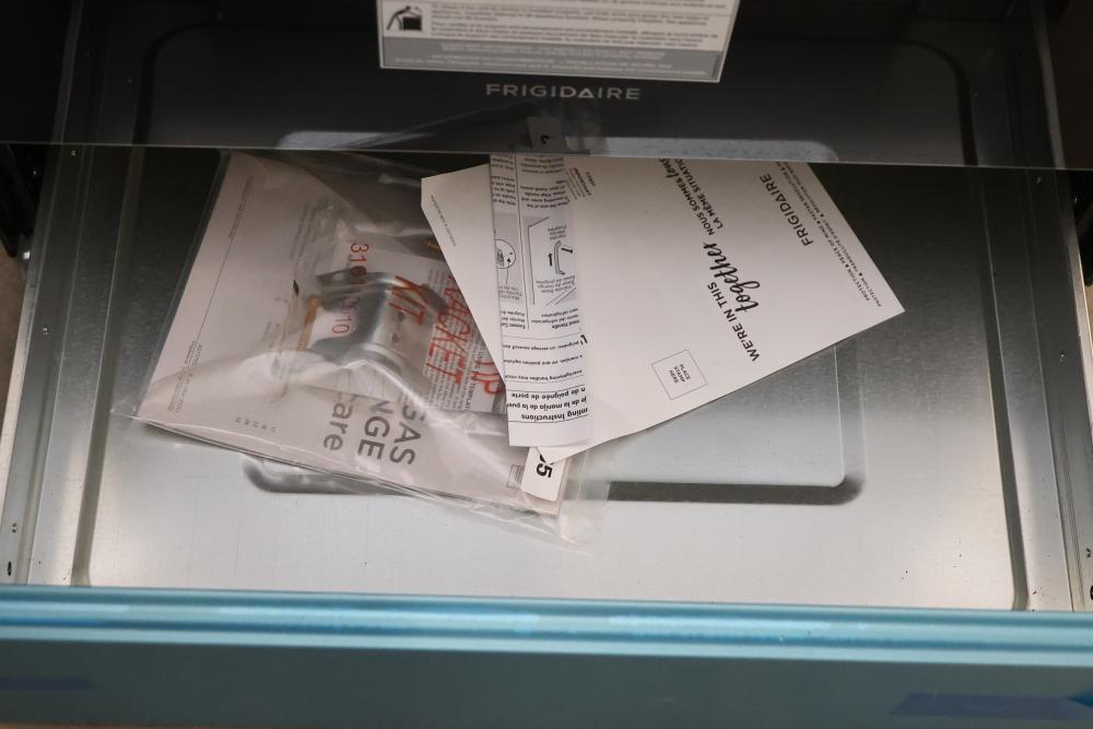Frigidaire FCRG3052BS 30 inch 5 Burner Freestanding Gas Range in Stainless Steel. Features a spacious oven with racks and a 5-burner gas cooktop. Condition may vary, see photos for details. Operation manual and accessories included. Pickup only.