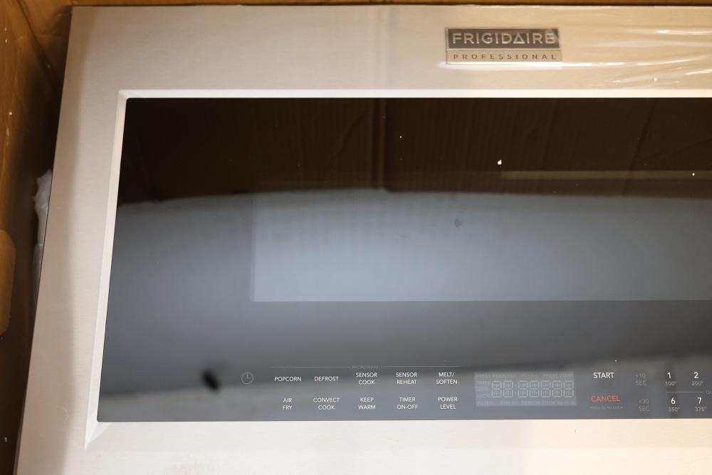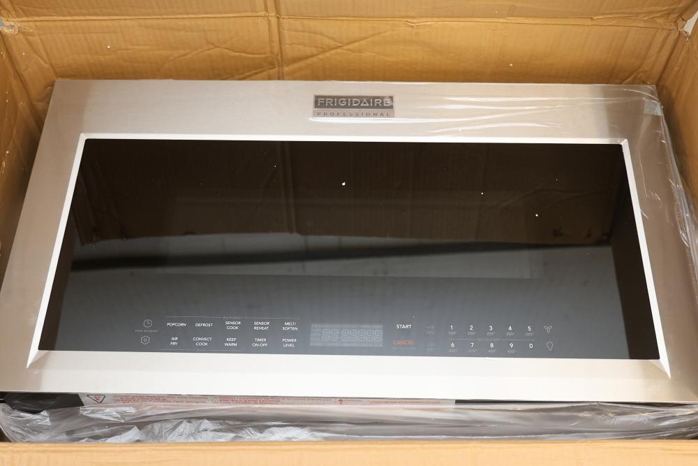 Frigidaire PMOS1980AF 30 inch Over-The-Range Microwave in Stainless Steel with Vent System and Air Fry Function along with a 1.9 cubic feet capacity. Includes original packaging and components, though condition may vary, see photos for details. Pickup only.