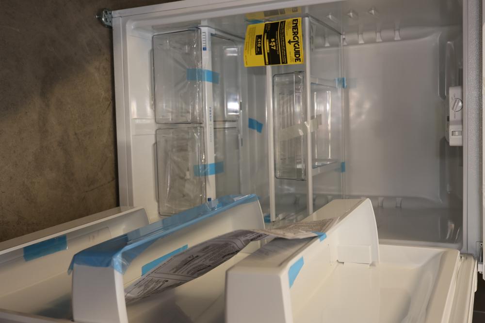 Frigidaire FFTR1835VW 30 inch Top Freezer Refrigerator, Garage Ready, Depth of 18.33 cubic feet. The refrigerator features a top freezer design, spacious interior, and garage-ready functionality. Condition may vary, refer to photos for details. Pickup only.
