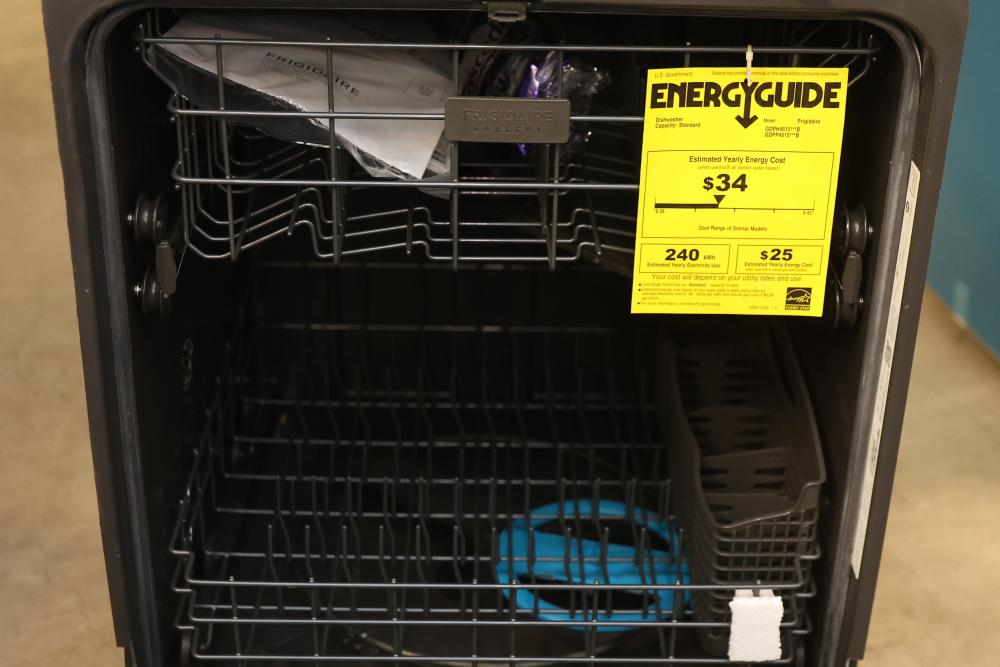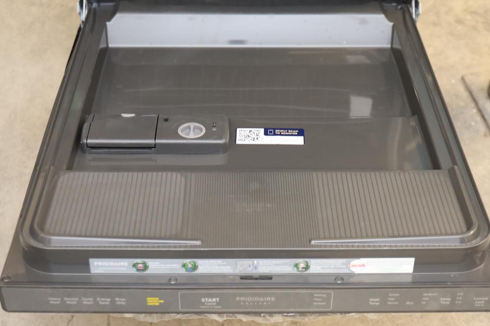 Frigidaire GDPH4515AD 24 inch Black Stainless Steel Dishwasher. The unit's condition may vary, please refer to provided photos for details. Features a sleek black stainless steel design, multiple cycle options, and an efficient interior layout. Pickup only.