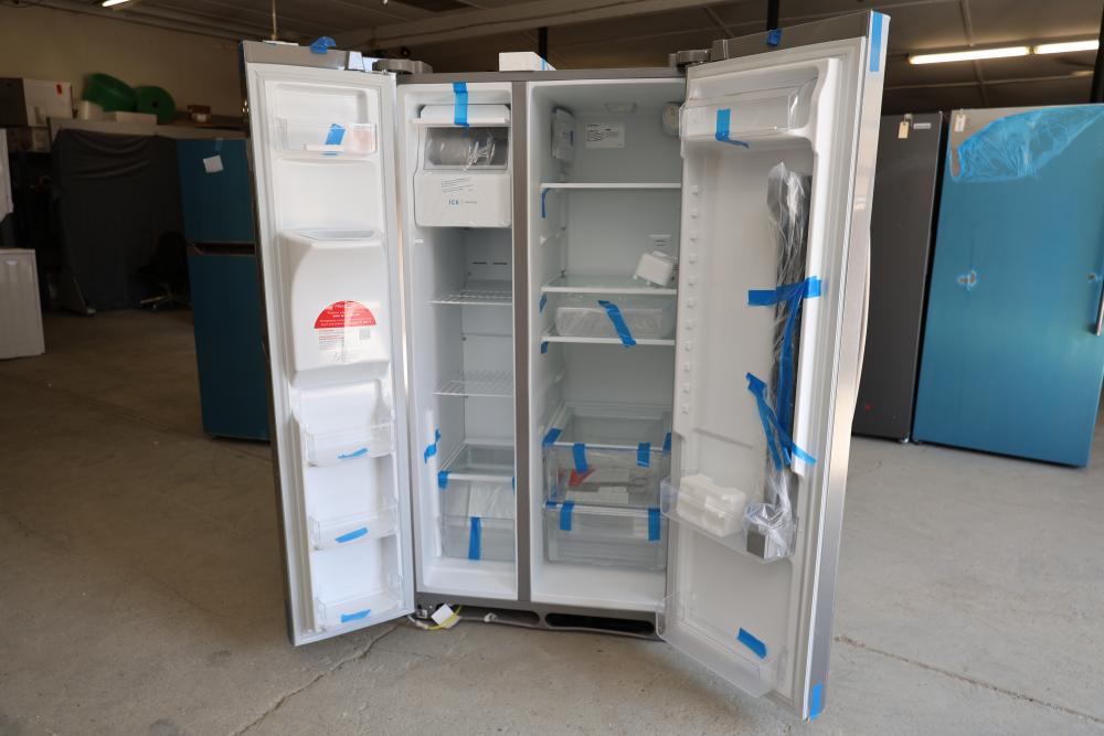 Frigidaire Side-by-Side Refrigerator Model FRSS2623AS 36 Inches with a Capacity of 26 Cubic Feet. Condition may vary, see photos for details. Pickup only.