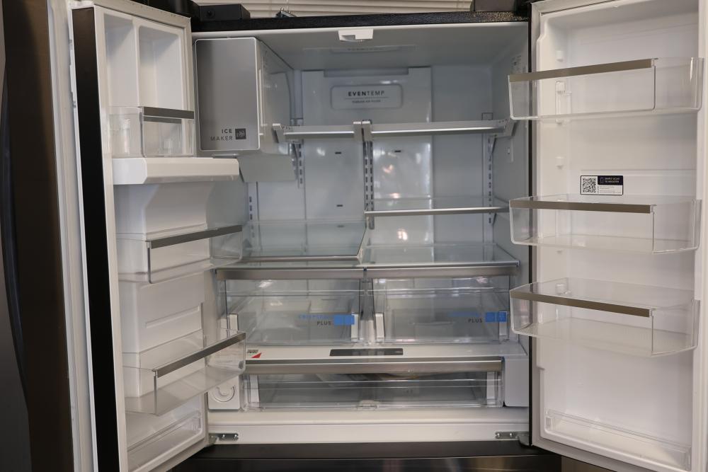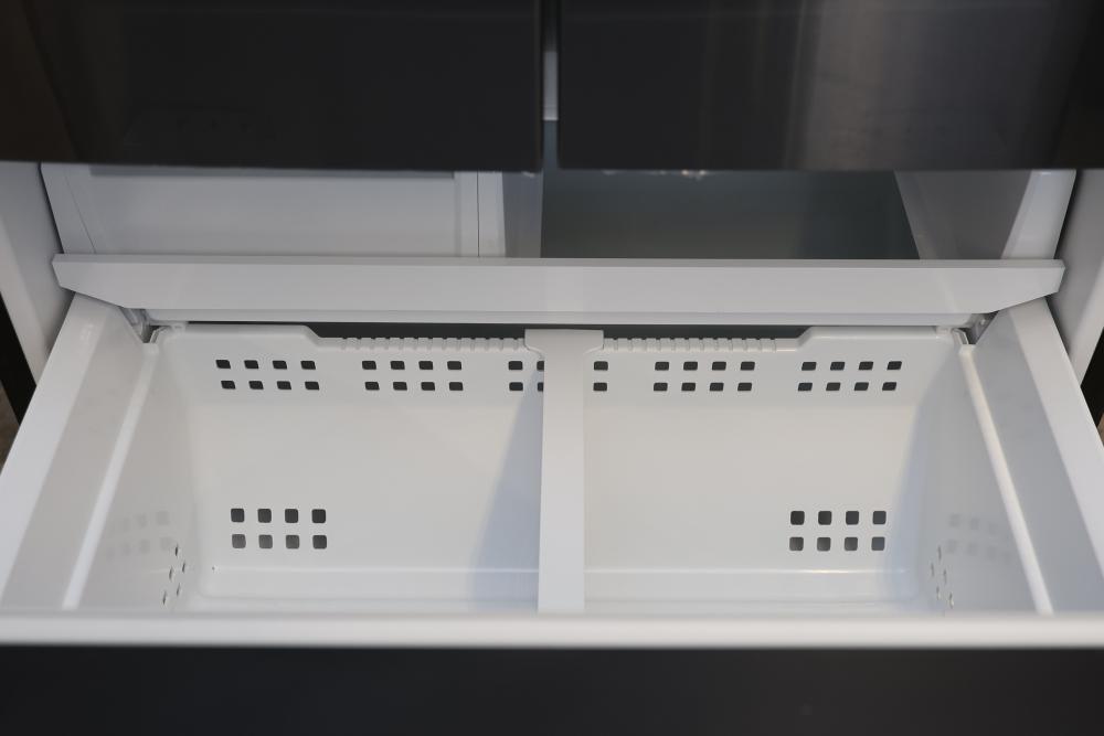 Frigidaire GRFS2853AD 36 Inch French Door Refrigerator with 27.8 Cubic Ft Capacity. The unit features a spacious interior, water and ice dispenser, and multiple clear storage compartments. Wheels on the unit seem to be broken, and the condition may vary. See photos for details. Pickup only.