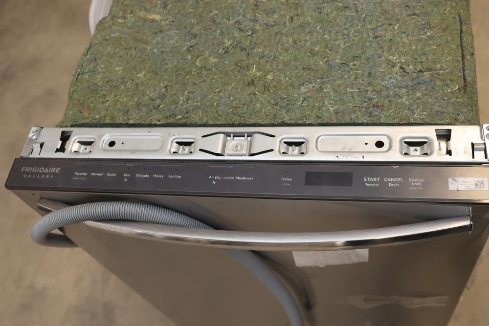 Frigidaire Gallery GDSH4715AF 24 Inch Top Control Built-In Tall Tub Dishwasher in Stainless Steel with CleanBoost Technology. Features a 47 dBA noise level and a spacious tall tub design. Condition may vary, dents and visible wear are present (see photos). Pickup only.