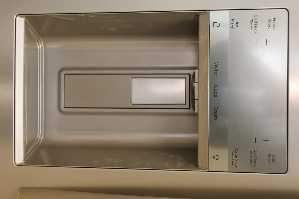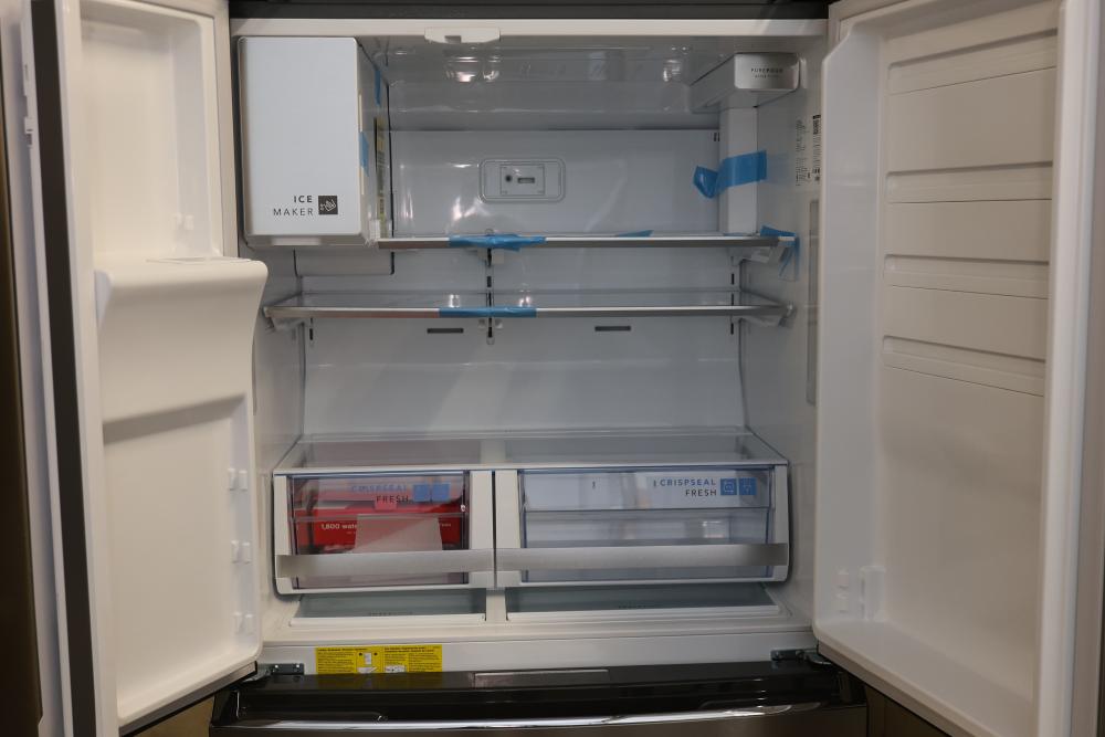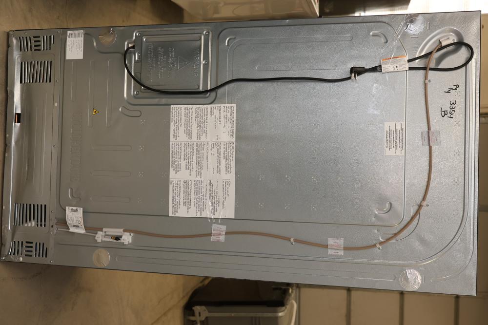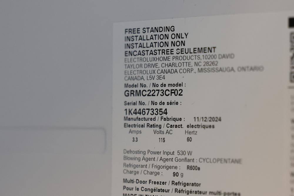 Frigidaire Gallery GRMC2273CF 36 Inch Counter-Depth 4-Door French Door Refrigerator in Stainless Steel. Features include a built-in water and ice dispenser, multiple storage compartments, and an advanced air filtration system. Condition may vary, please see photos for details. Pickup only.