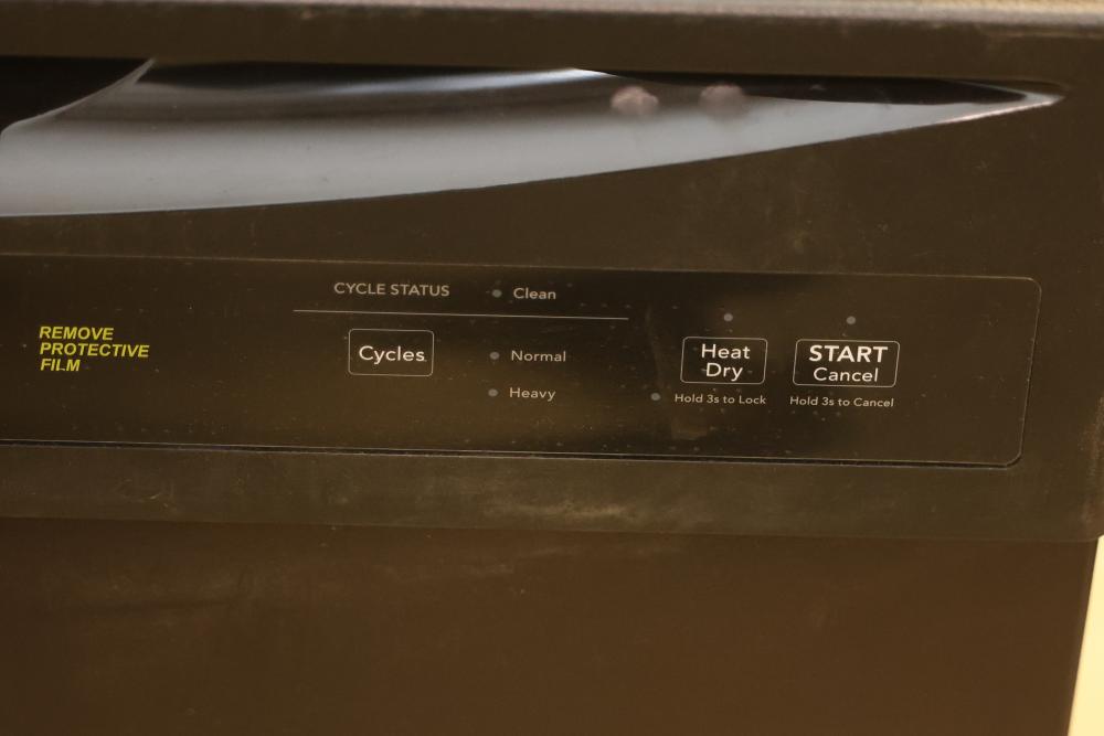 Frigidaire FDPC4221AB 24 Inch Black Front Control Smart Built-In Tall Tub Dishwasher. Unit falls forward when the door is opened fully and requires repair. Includes various visible connections and standard internal racks. See photos for further details and condition of the unit. Pickup only.