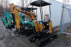 New 2025 CFG Industrial gas powered mini Excavator model H12R with 420cc gasoline engine with EPA, bucket, 4' long tracks, 36.5" wide base, 6" wide tracks, canopy, hydraulic boom & bucket controls, dozer blade. Hours reading less than 1 hour.