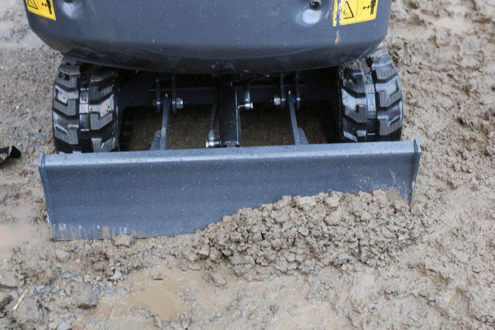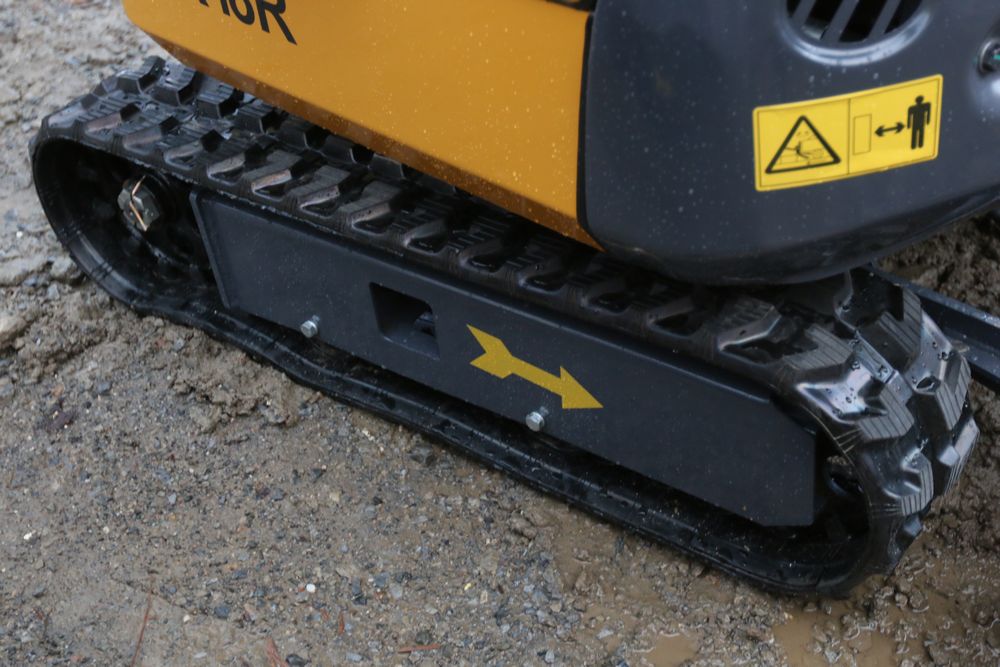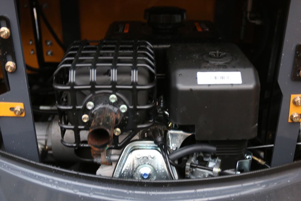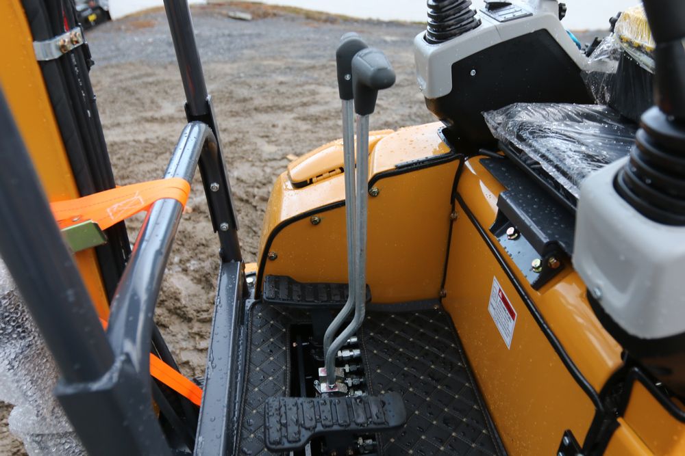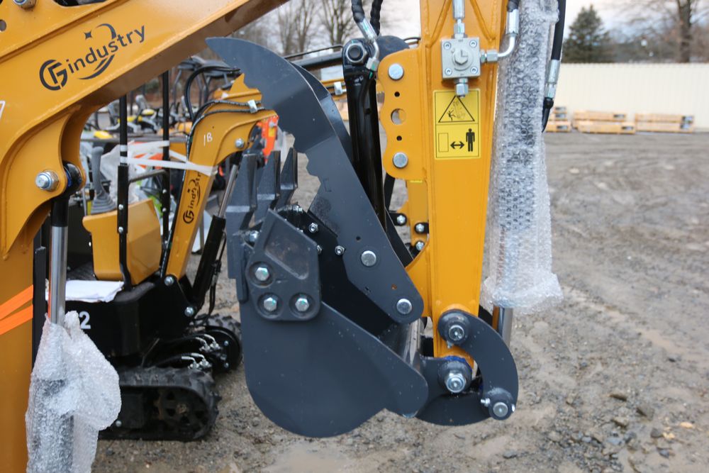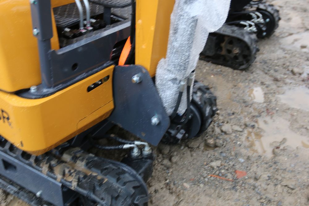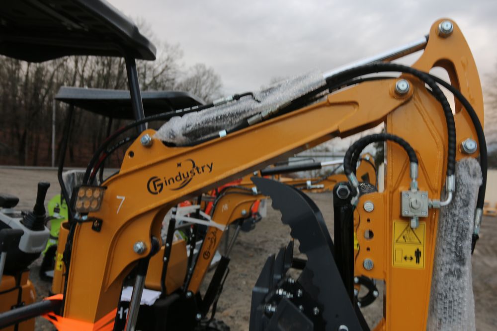 New 2025 CFG mini excavator, model QK18R, RATO, 13.5HP, 8.6KW, with pilot system, hydraulic thumb, rubber tracks, dozer blade, and gasoline engine. Hours reading less than one hour.