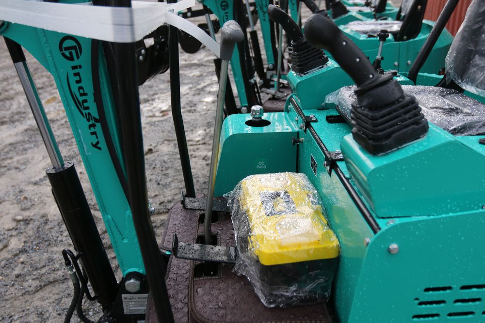 New 2025 CFG Industrial gas powered mini Excavator model H15R with 420cc gasoline engine, bucket, 4' long tracks, 38.5" wide base, 6" wide tracks, canopy, hydraulic boom & bucket controls, pilot system, thumb, dozer blade. Hours reading less than 1 hour.