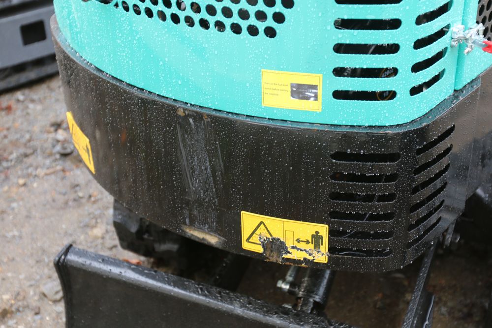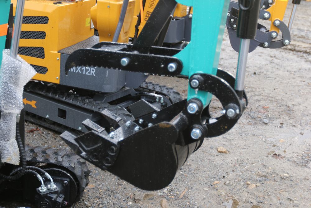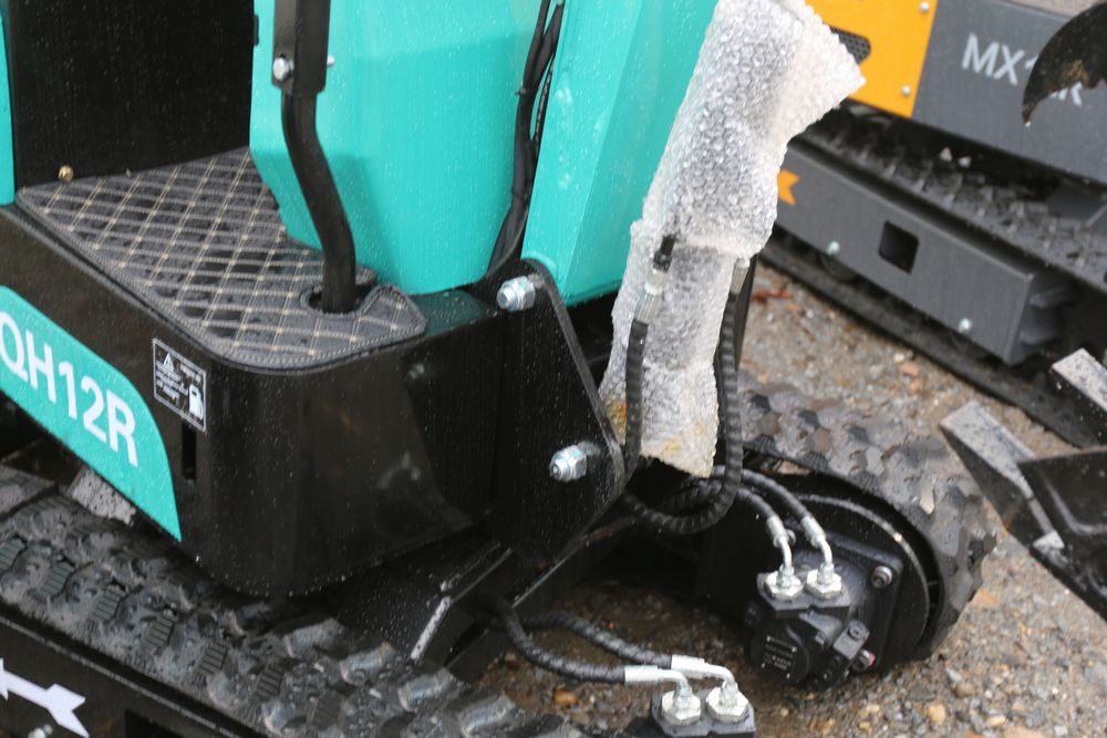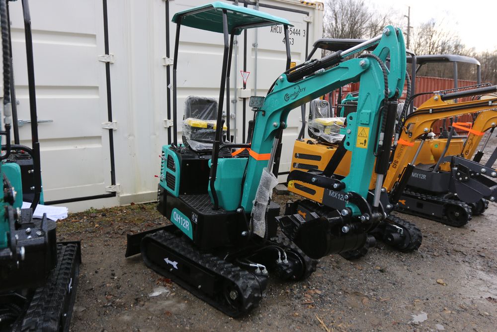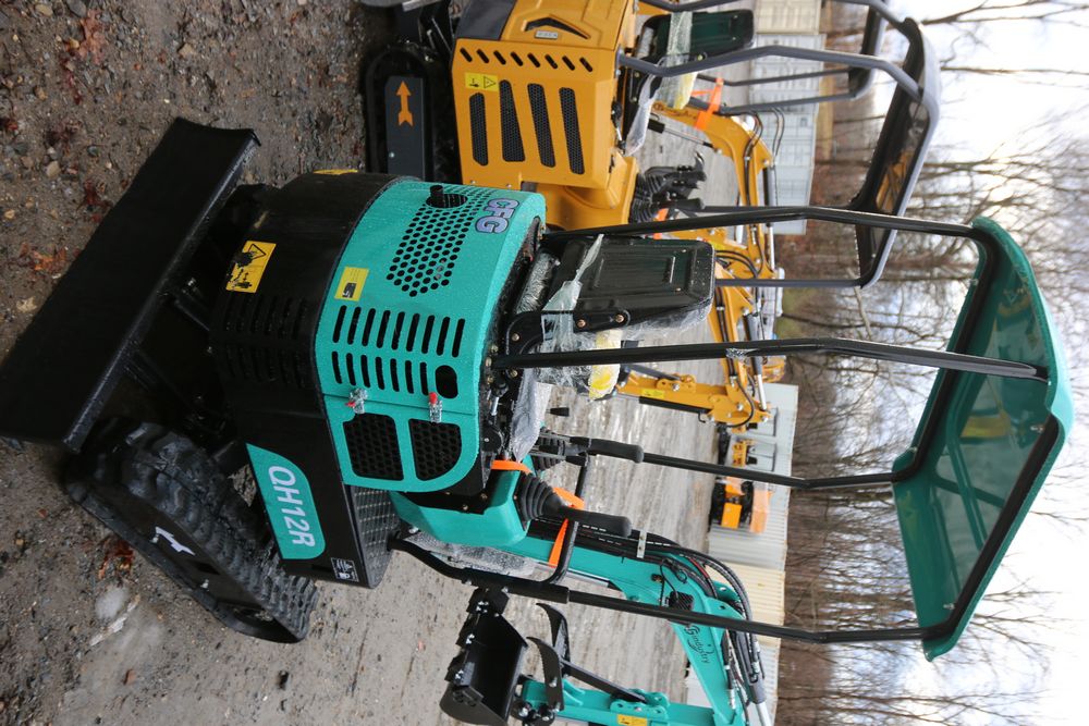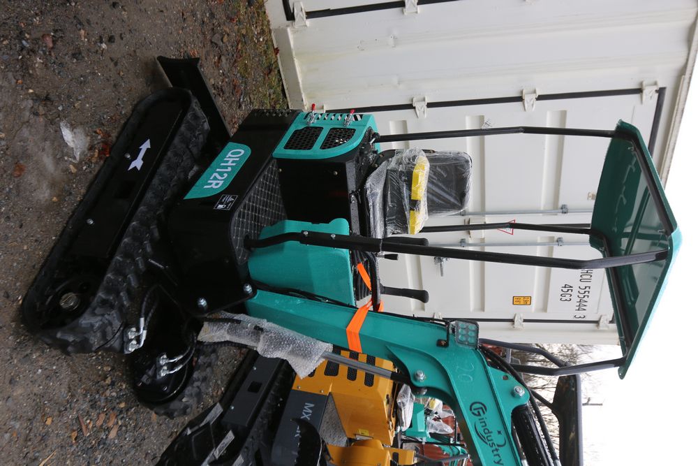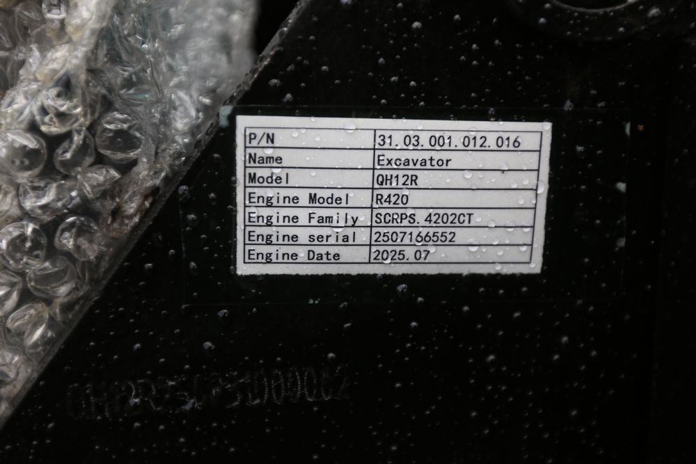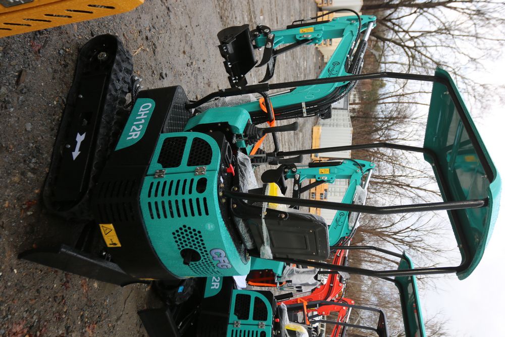 New 2025 CFG Industrial gas powered mini Excavator model QH12R with 420cc gasoline engine, bucket, 4' long tracks, 36.5" wide base, 6" wide tracks, canopy, hydraulic boom & bucket controls, dozer blade. Hours reading less than 1 hour.