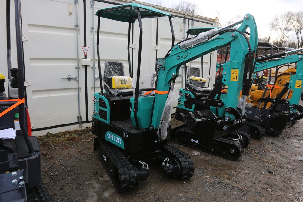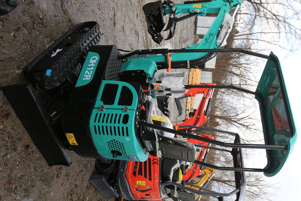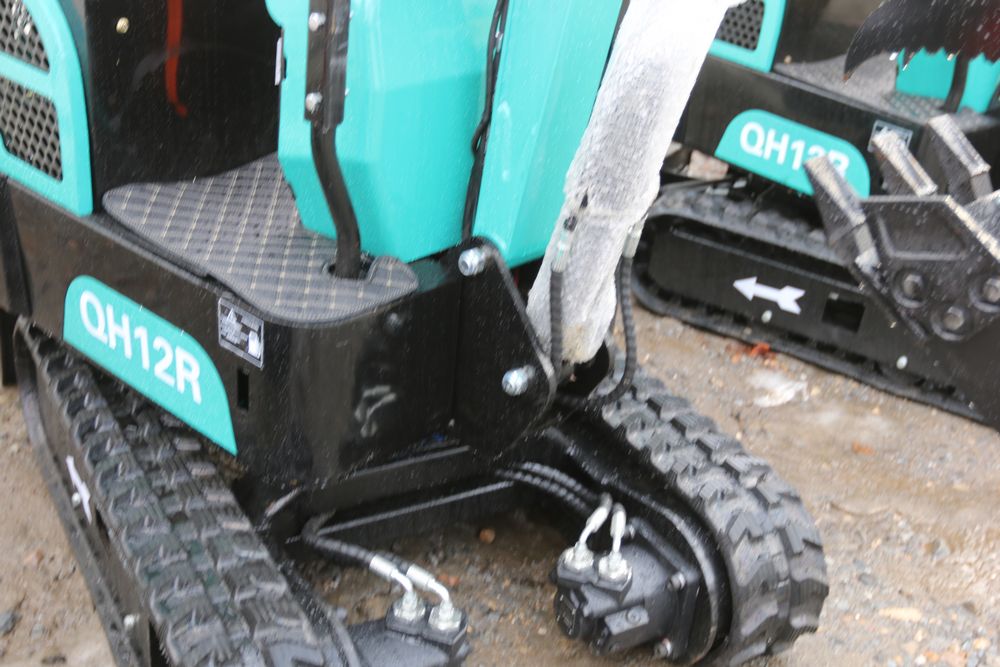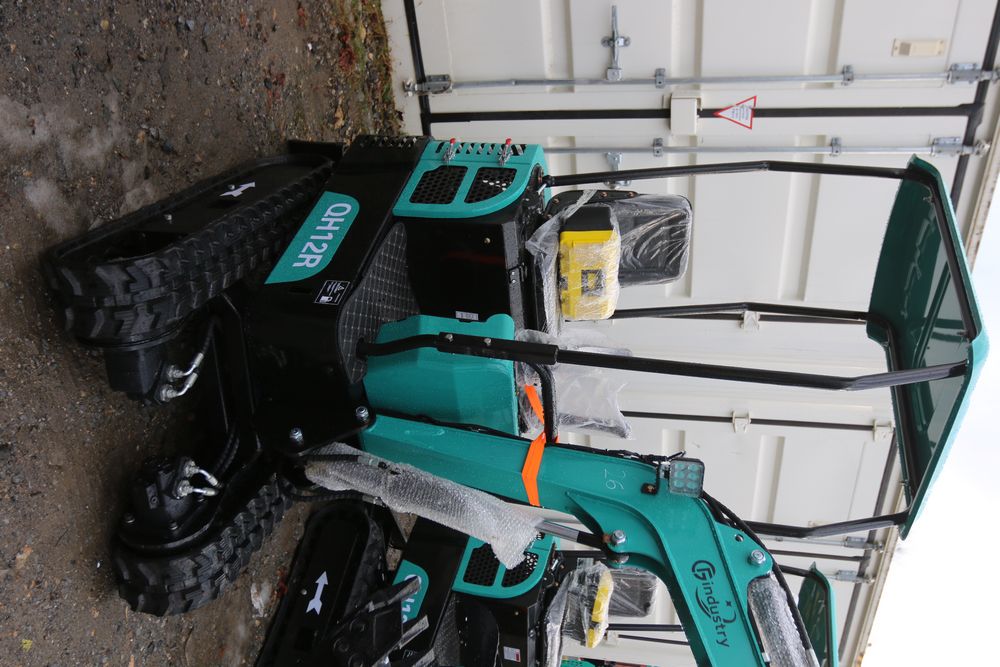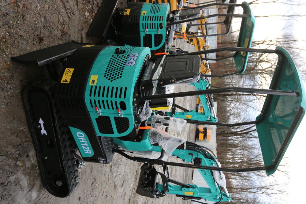 New 2025 CFG Industrial gas powered mini Excavator model QH12R with 420cc gasoline engine, bucket, 4' long tracks, 36.5" wide base, 6" wide tracks, canopy, hydraulic boom & bucket controls, dozer blade. Hours reading less than 1 hour.