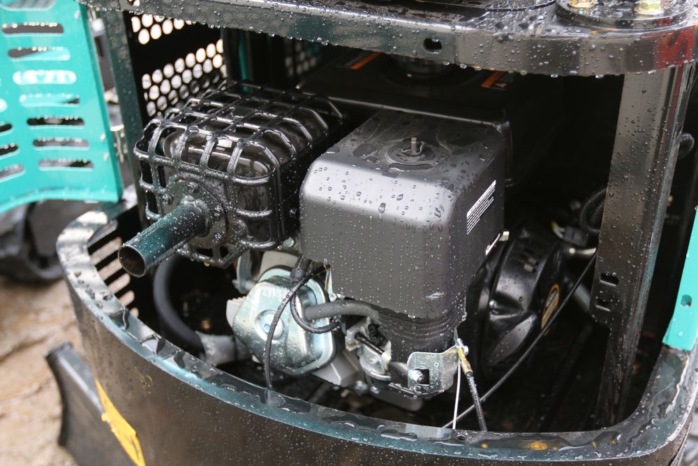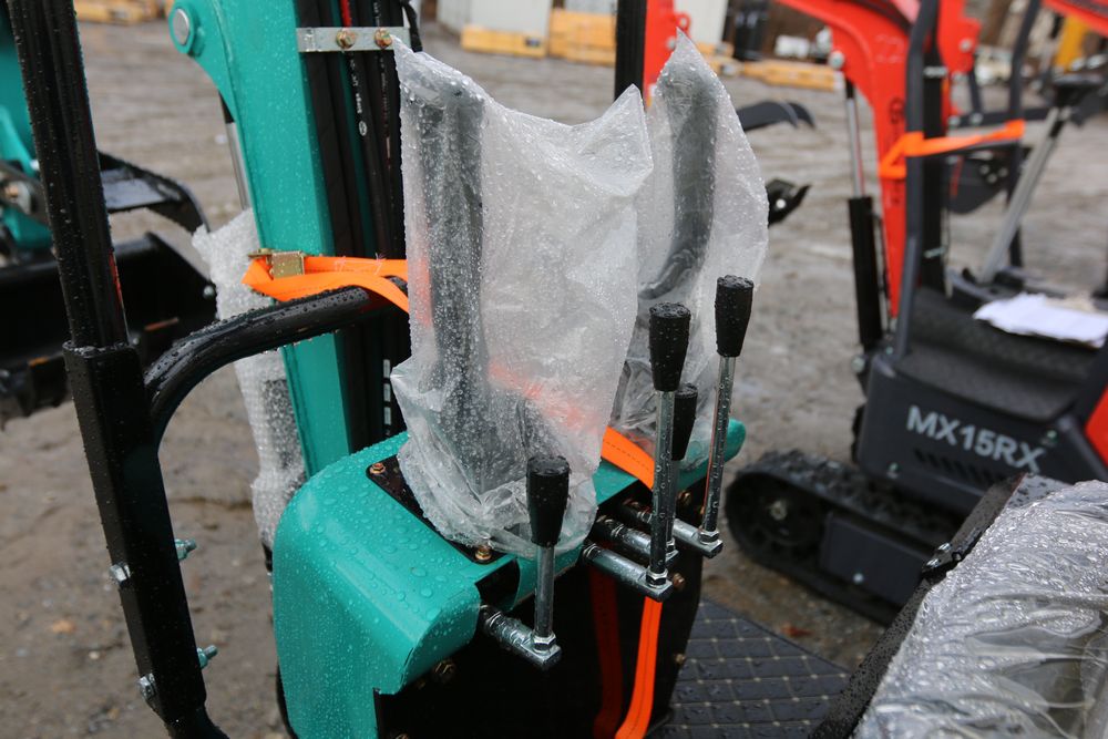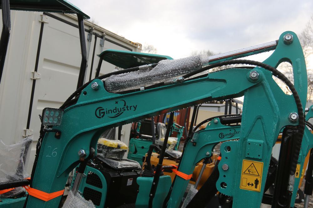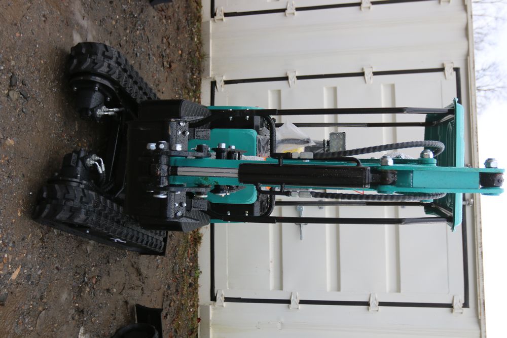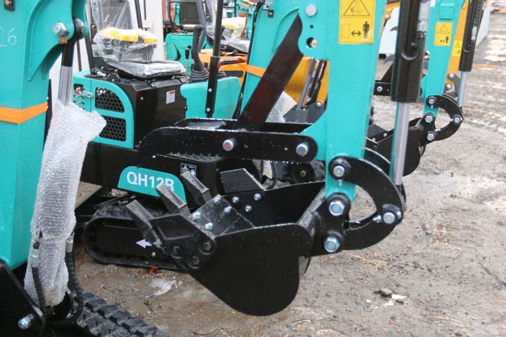 New 2025 CFG Industrial gas powered mini Excavator model QH12R with 420cc gasoline engine, bucket, 4' long tracks, 36.5" wide base, 6" wide tracks, canopy, hydraulic boom & bucket controls, dozer blade. Hours reading less than 1 hour.