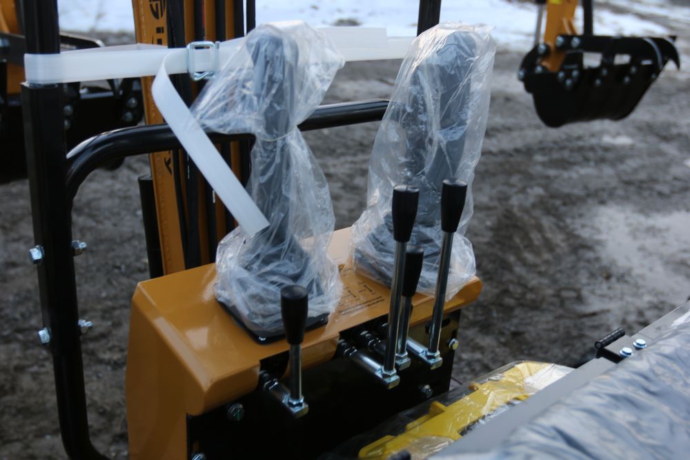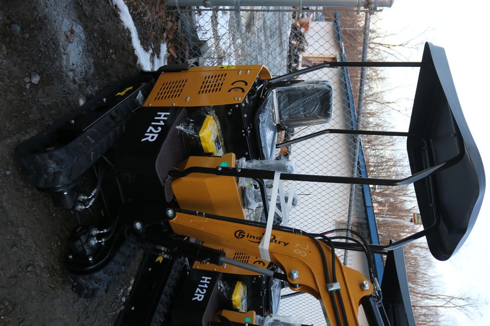 New 2025 CFG Industrial gas powered mini Excavator model H12R with 420cc gasoline engine with EPA, bucket, 4' long tracks, 36.5" wide base, 6" wide tracks, canopy, hydraulic boom & bucket controls, dozer blade. Hours reading less than 1 hour.