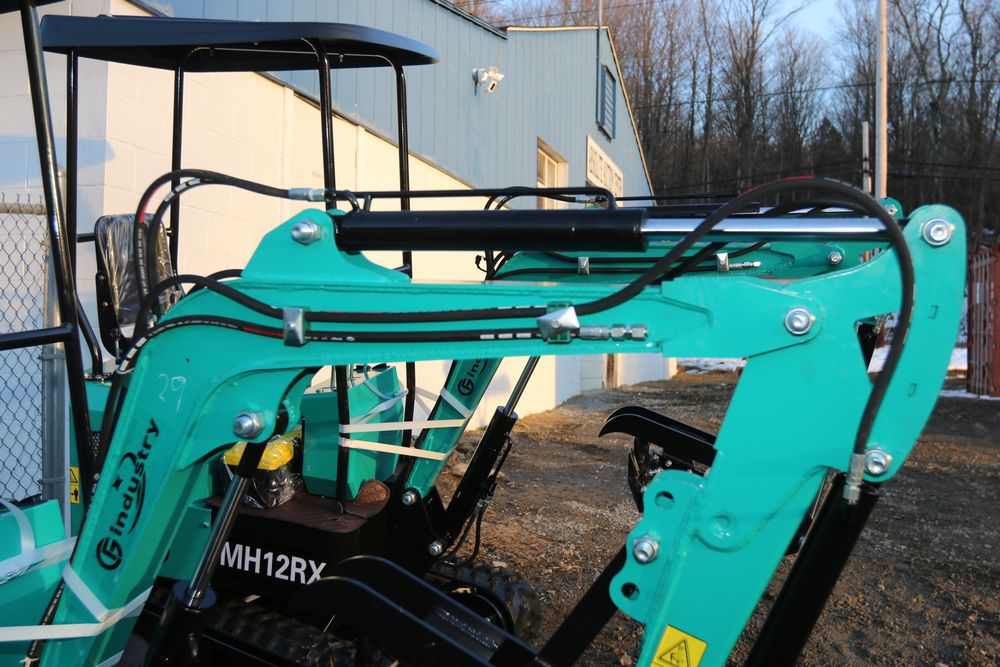 New 2025 CFG Industrial MH12RX mini excavator with bucket, thumb, gas engine. Hours reading less than 1 hour.