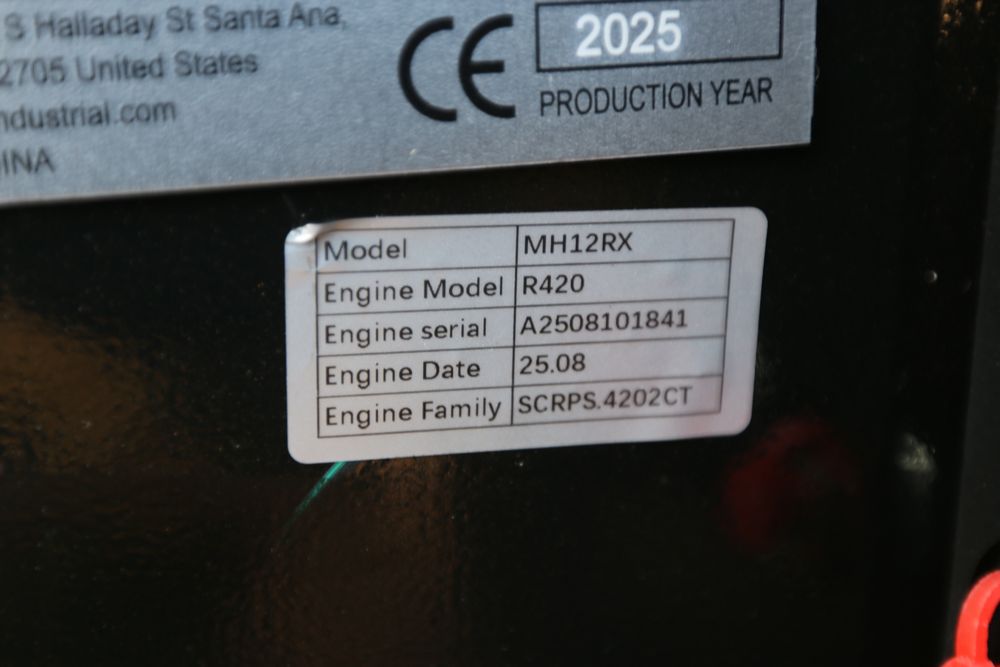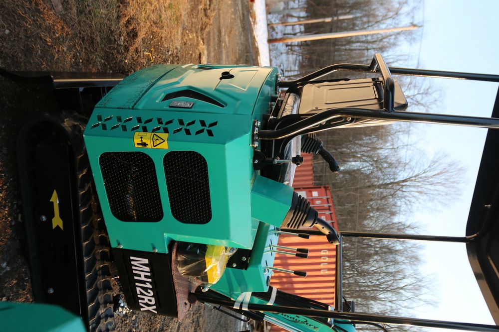 New 2025 CFG Industrial MH12RX mini excavator with bucket, thumb, gas engine. Hours reading less than 1 hour.