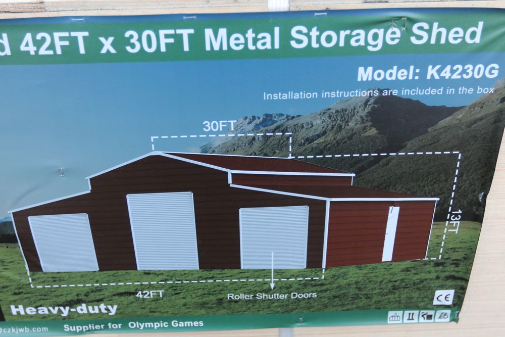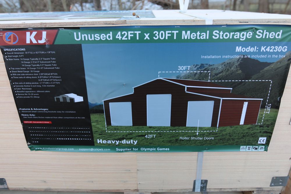New 2025 Metal Storage Shed 42FT x 30FT Metal Storage Shed model K4230G, in wooden crate.