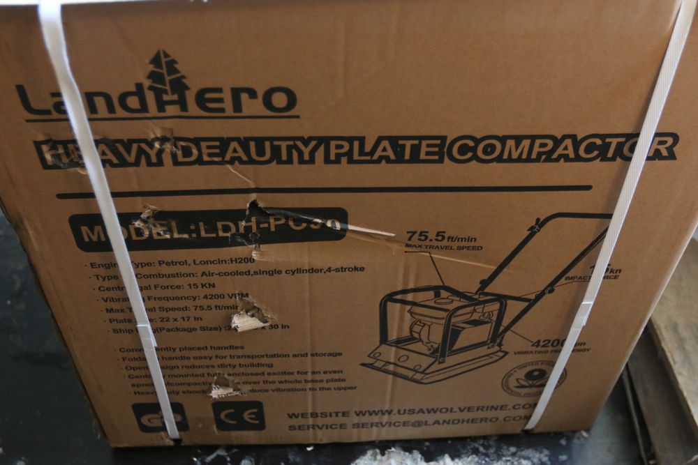 New 2025 LandHonor heavy duty plate compactor, model LDH-PC90H, 6.5HP Loncin G200F engine.