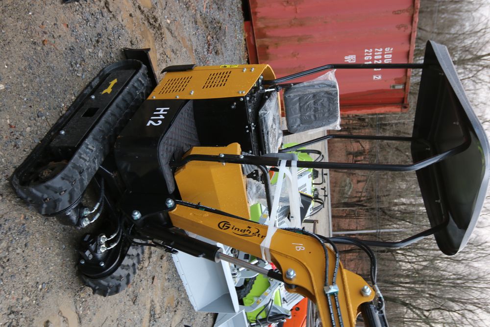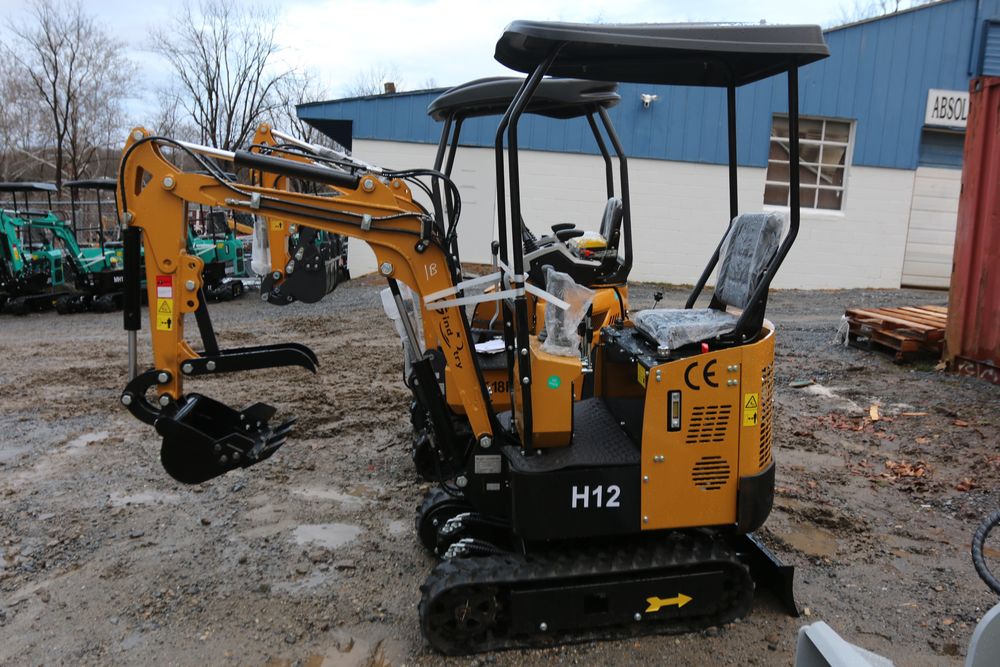 New 2025 CFG Industrial mini excavator model: H12 with 13.5 HP Briggs & Stratton engine, rubber tracks, dozer blade, and manual thumb.