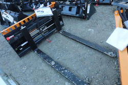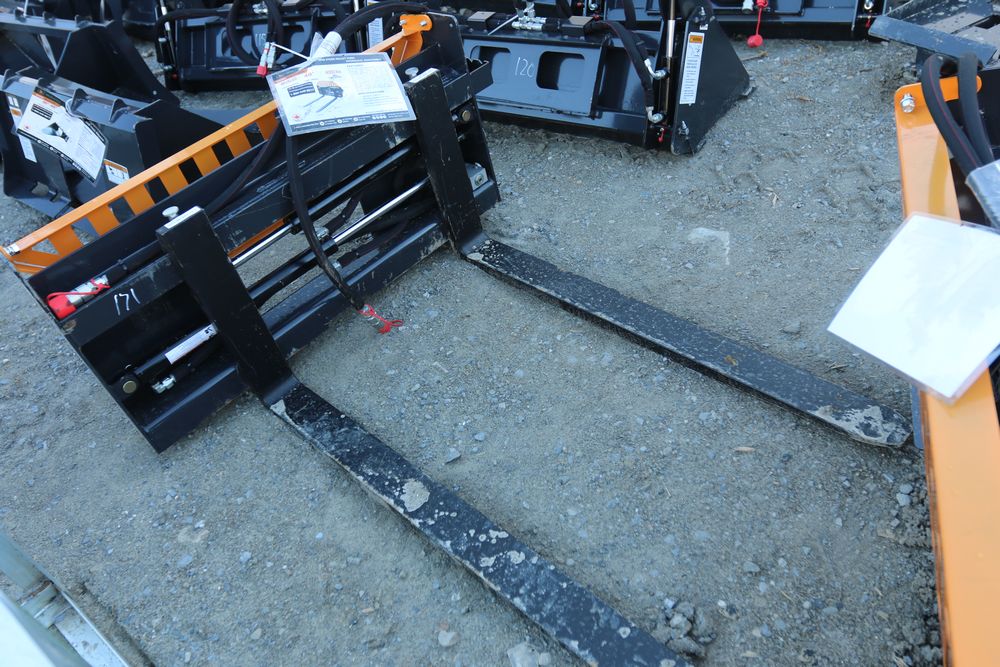New 2025 Wolverine skid steer pallet fork attachment hydraulic adjustment, model PFA-11-3300G, 48" fork adjustment.