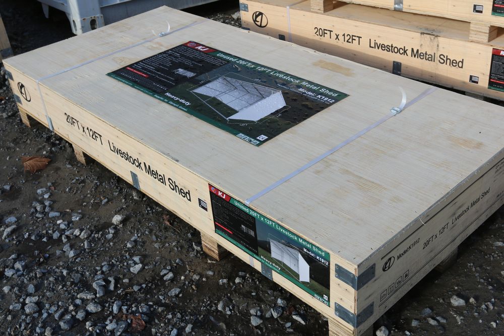 New 2025 KJ unused 20ftx12ft livestock metal shed model K1912, in wood crate.
