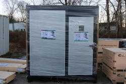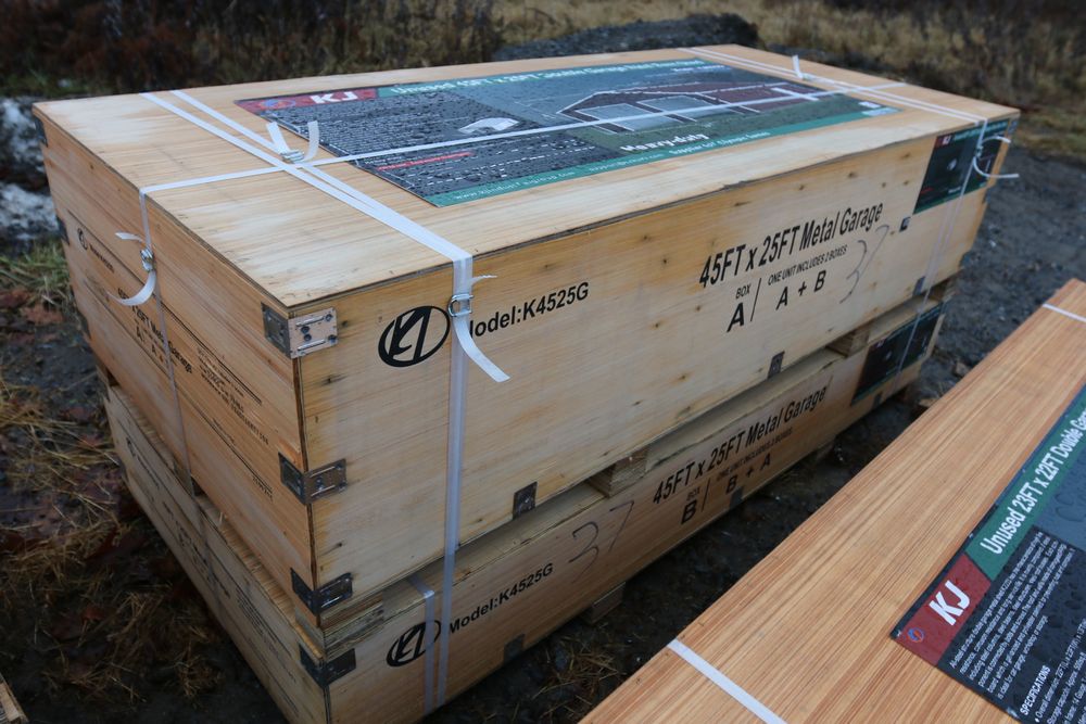 New livestock metal shed, 11'Tx12'Wx25'L, model K2512, in wood crate.