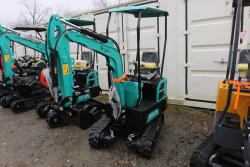 New 2025 CFG Industrial gas powered mini Excavator model H12R with 420cc gasoline engine with EPA, bucket, 4' long tracks, 36.5" wide base, 6" wide tracks, canopy, hydraulic boom & bucket controls, dozer blade. Hours reading less than 1 hour.