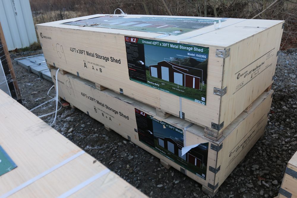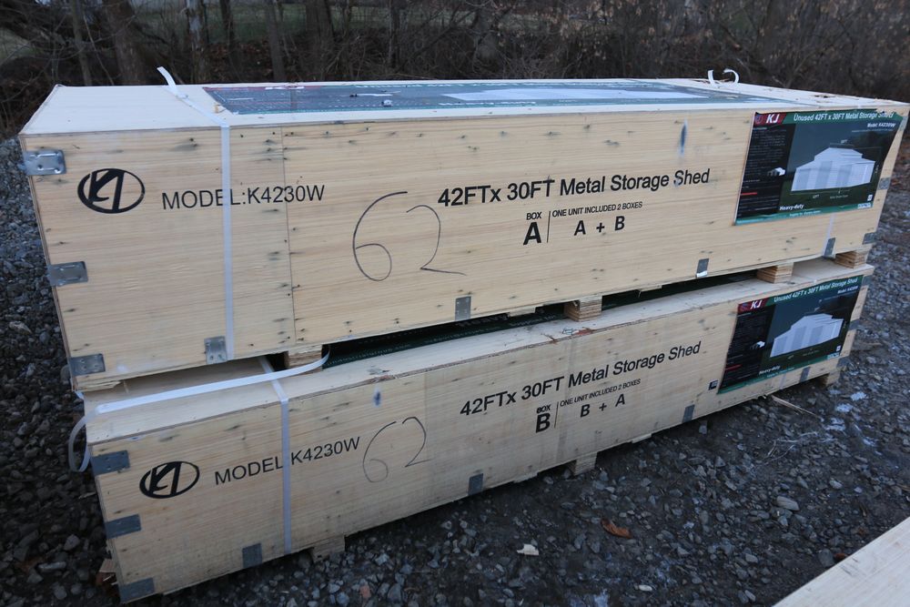 New 2025 Metal Storage Shed 42FT x 30FT Metal Storage Shed model K4230W, in wooden crate.