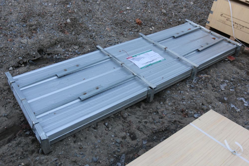 New livestock metal shed, 11'Tx12'Wx25'L, model K2512, in wood crate.