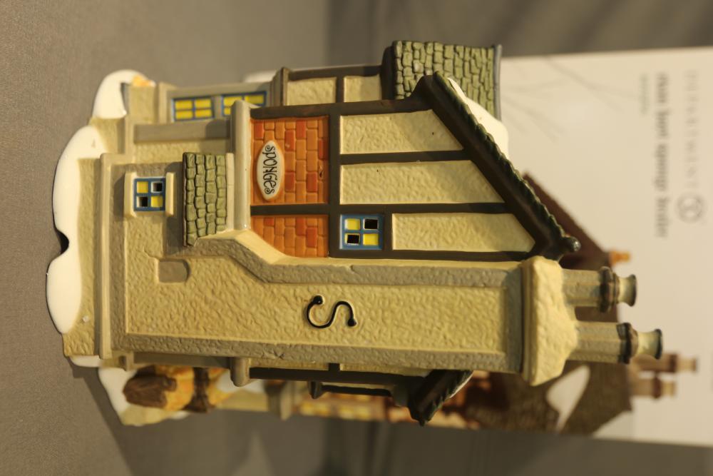 Items are Department 56 Dickens Village Series Buildings & Accessories from one collector. Items include "Stratford Holiday Pies and Tarts"; "Tegan's Toy Shoppe," "Burwickglen Golf Clubhouse," illuminated buildings: Brandon Mill, Devonshire Creamery," "Boar's Bacon & Candied Hams"; Porcelain Buildings & Accessories. Includes "A Christmas Carol" series: "M Fezziwig Warehouse," "Scrooge & Marley," Heritage Village Figurines & Accessories. Includes various figurines like "Not too Fast, Please," "Town Blacksmith," "To the Manor Born"; Village Series and Village Accessories Figurines. Includes "Buyer one for Prosperity," "Backyard Bird Houses,"; holiday decorations: snowmen figurines, holiday-themed trees, Christmas lights & more. Items are located in Pleasant Valley, NY.