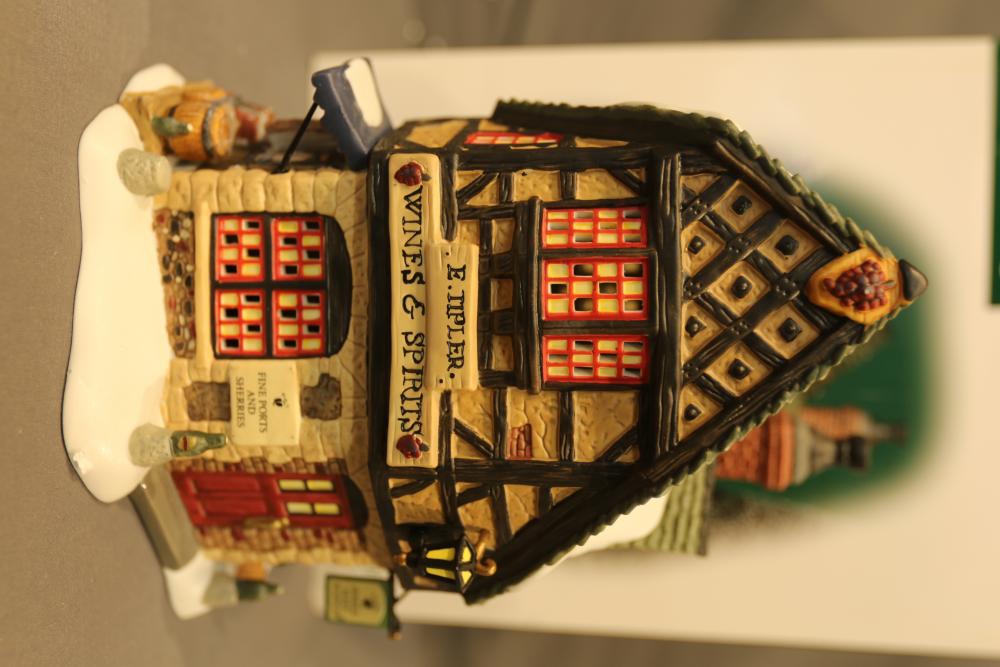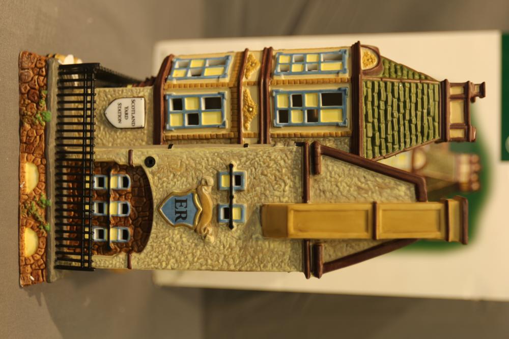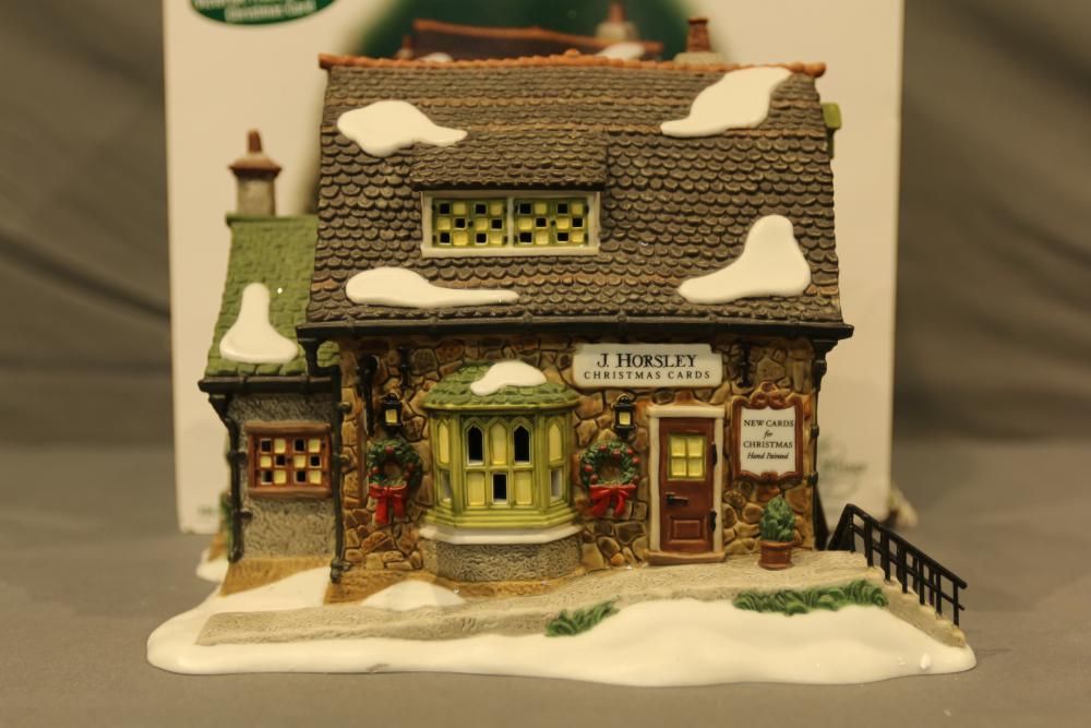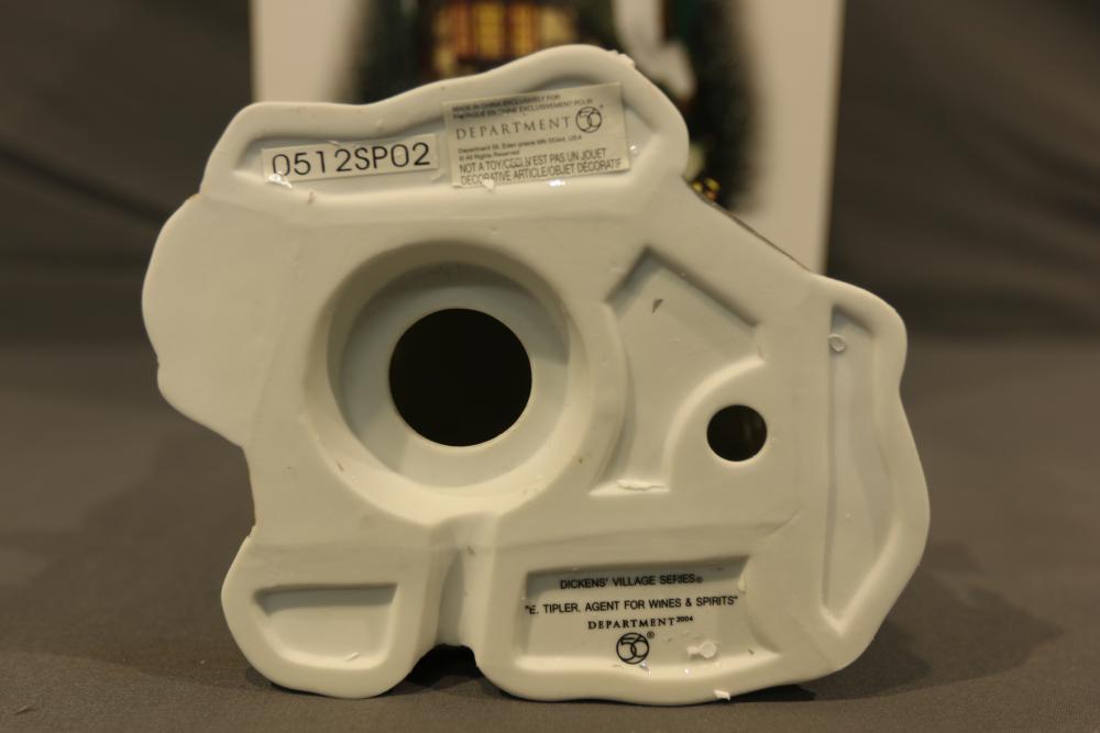 Department 56 Dickens Village Buildings. Includes "Scotland Yard Station," "J. Horsley Christmas Cards," and "E. Tipler Agent for Wine & Spirits." with original boxes. Conditions may vary.