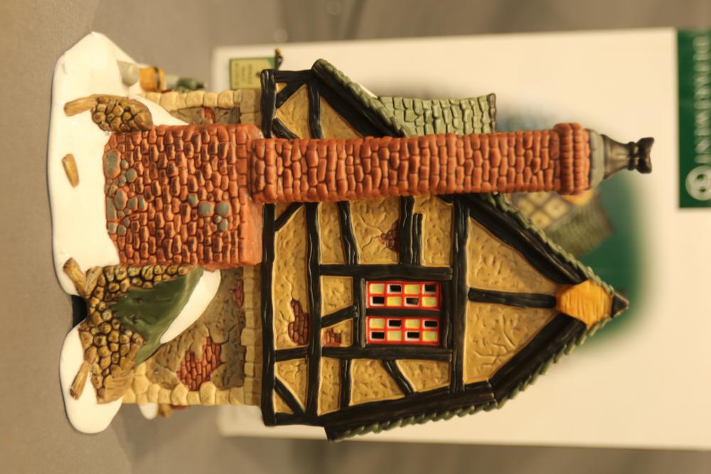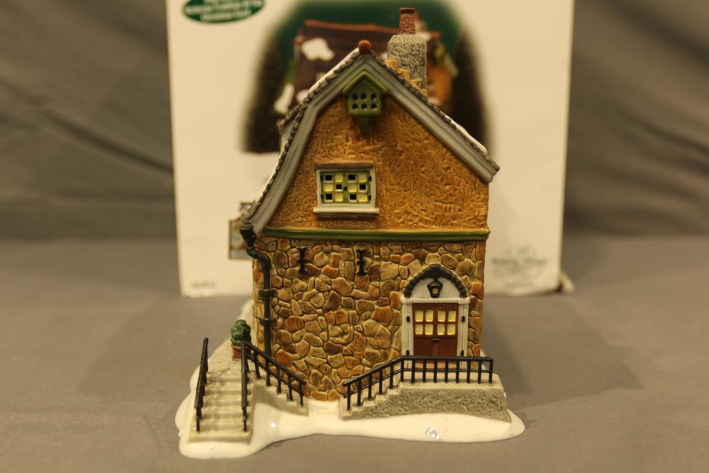 Items are Department 56 Dickens Village Series Buildings & Accessories from one collector. Items include "Stratford Holiday Pies and Tarts"; "Tegan's Toy Shoppe," "Burwickglen Golf Clubhouse," illuminated buildings: Brandon Mill, Devonshire Creamery," "Boar's Bacon & Candied Hams"; Porcelain Buildings & Accessories. Includes "A Christmas Carol" series: "M Fezziwig Warehouse," "Scrooge & Marley," Heritage Village Figurines & Accessories. Includes various figurines like "Not too Fast, Please," "Town Blacksmith," "To the Manor Born"; Village Series and Village Accessories Figurines. Includes "Buyer one for Prosperity," "Backyard Bird Houses,"; holiday decorations: snowmen figurines, holiday-themed trees, Christmas lights & more. Items are located in Pleasant Valley, NY.