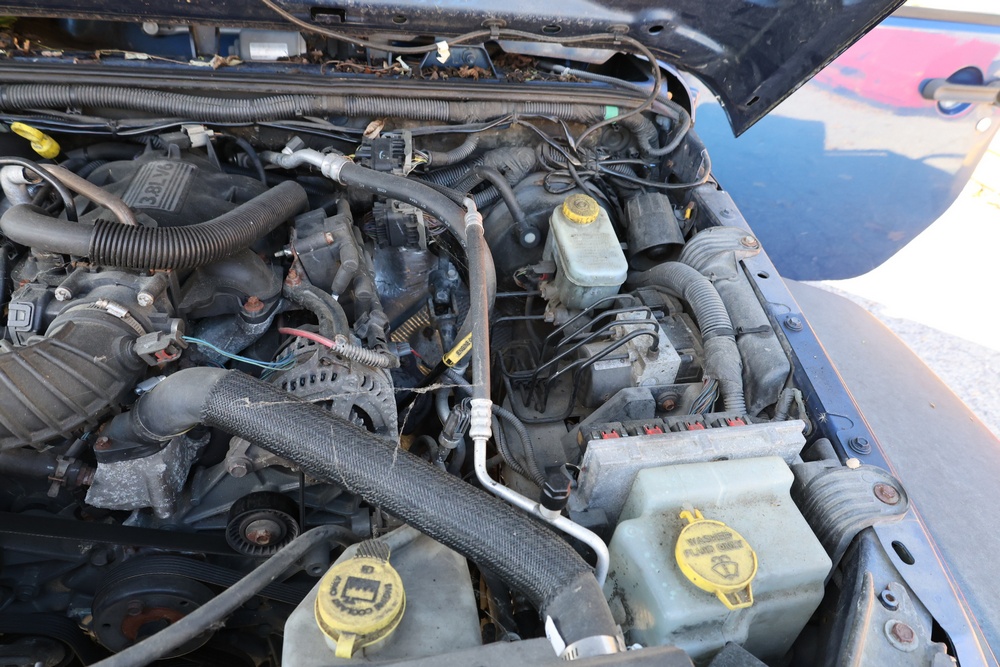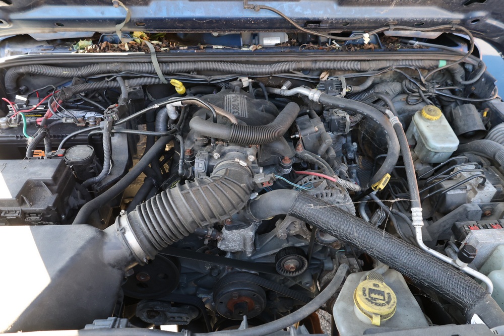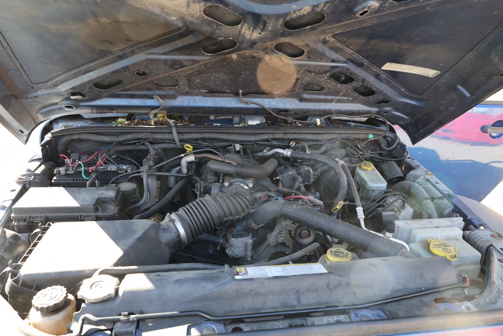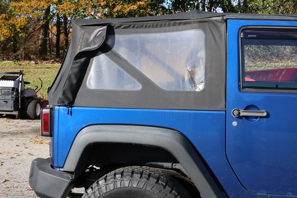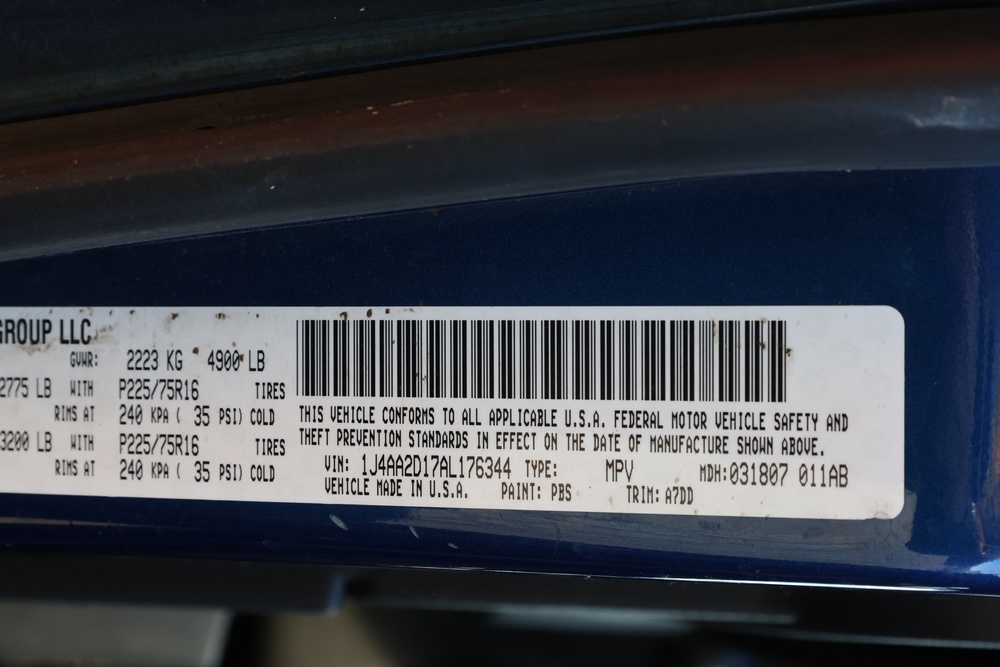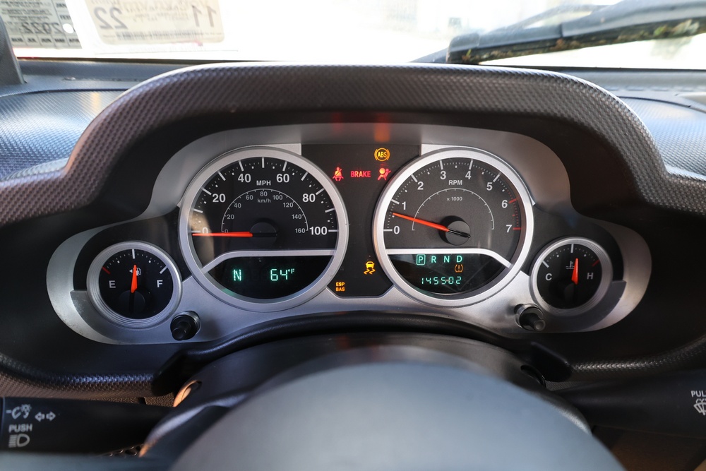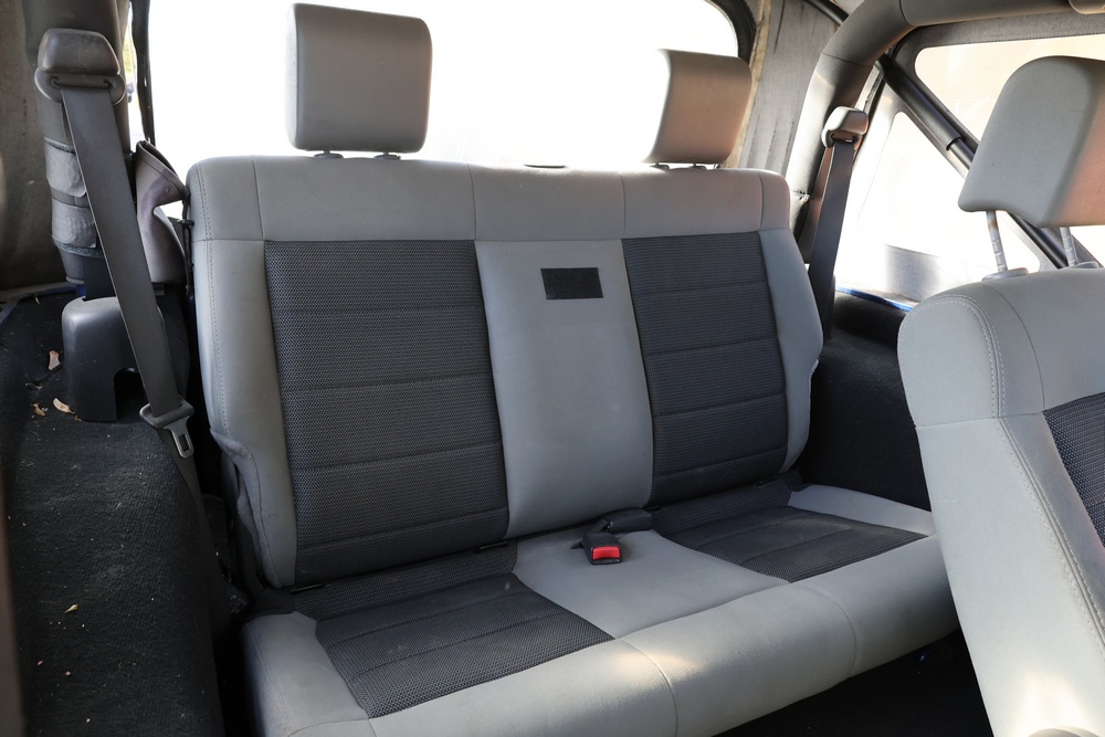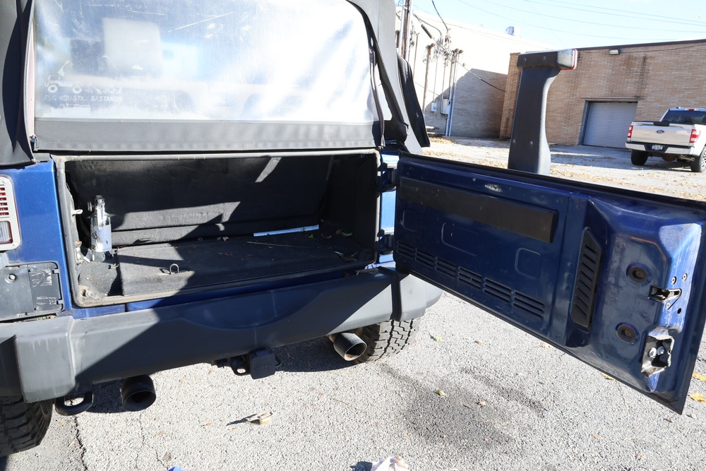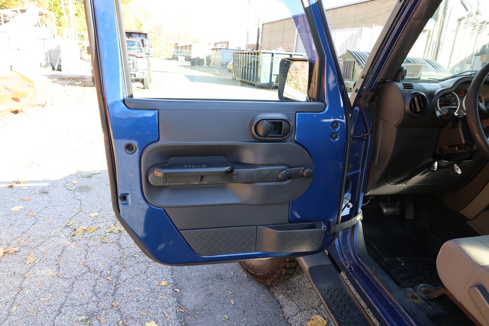 2010 Jeep Wrangler Sport 4x4 two-door SUV with automatic transmission. VIN: 1J4AA2D17AL176344. Odometer reading: 145,502. Exterior: Blue with black aftermarket front bumper, hood latches, soft top, light bar, and large off-road tires mounted on black wheels. Interior: Gray and black front bucket seats, center console, automatic shifter, and standard dashboard with factory gauges. Tire size: P225/75R16. Additional equipment includes light bar, custom front bumper with D-rings and fog lights, side steps, and "Trail Rated" and "JK Sport Wrangler" decals. Title and key available. Seller reports: Runs and drives, motor replaced approx. 500 miles ago.