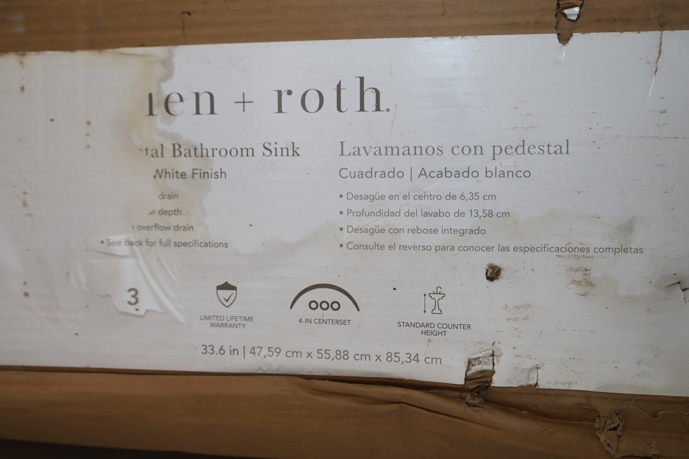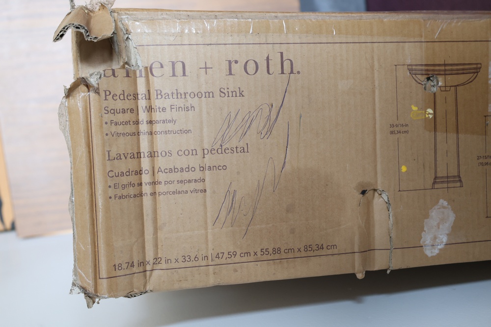 Allen and Roth pedestal bathroom Sink with square white finish number 76118. New in box.