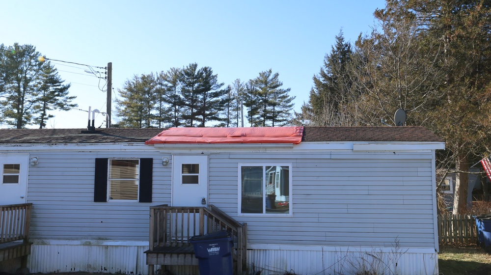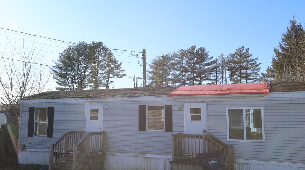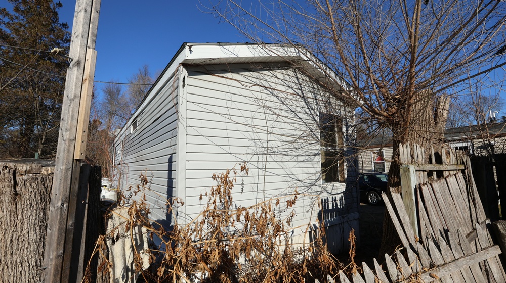This offering consists of a single-section mobile home measuring approximately 12 feet by 49 feet. The exterior is finished with vinyl siding and a shingled roof (seller note: will need to be replaced), with a tarp covering a portion of the roof, with two exterior entry doors with wood steps or small deck areas.