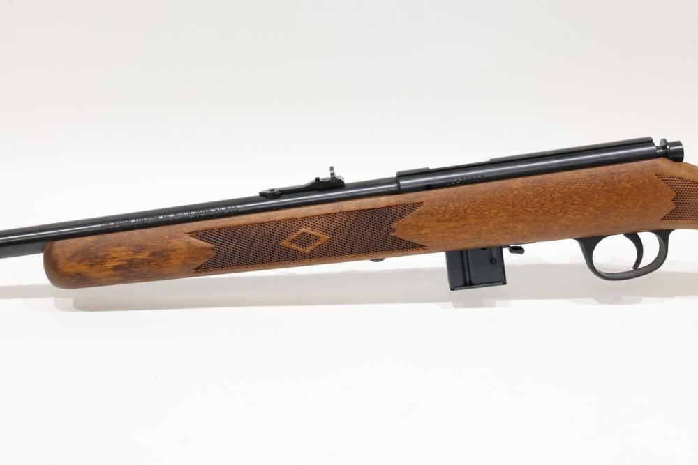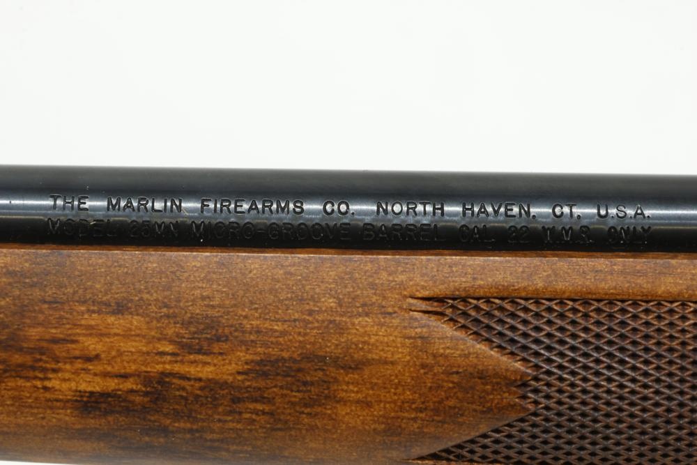 Marlin Model 25MN bolt-action rifle chambered in .22 W.M.R., with wooden stock, Marlin rubber butt pad. Serial Number 05479917. All lots are subject to all applicable laws at the time of transfer. NOTE: Semi automatic rifles and all handguns require a license in NYS. There is a $35 transfer fee per long gun. There is a $40 transfer fee per hand gun. There is a $20 transfer fee per ammunition lot. If you fail the background check, the transfer fee still applies, and you are still required to make payment and then reconsign the lot to auction. FFL dealers are not exempt from these fees. A background check will be required for all buyers purchasing a firearm and/or ammunition. NYS charges a background check fee for all firearms and ammunition. The fee is $9 for firearms and $2.50 for ammunition. The NYS fee is per background check NOT per lot, will be collected directly by Civil Armory, and is in addition to any transfer All lots are subject to all applicable laws at the time of transfer. NOTE: Semi automatic rifles and all handguns require a license in NYS. There is a $35 transfer fee per long gun. There is a $40 transfer fee per hand gun. There is a $20 transfer fee per ammunition lot. If you fail the background check, the transfer fee still applies, and you are still required to make payment and then reconsign the lot to auction. FFL dealers are not exempt from these fees. A background check will be required for all buyers purchasing a firearm and/or ammunition. NYS charges a background check fee for all firearms and ammunition. The fee is $9 for firearms and $2.50 for ammunition. The NYS fee is per background check NOT per lot, will be collected directly by Civil Armory, and is in addition to any transfer
