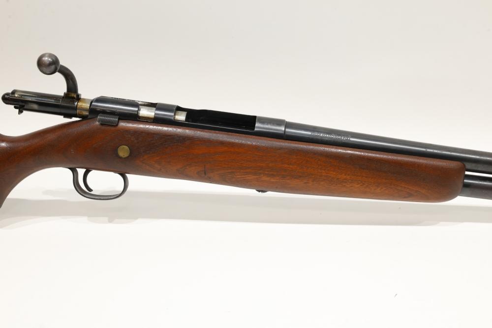 Sears & Roebuck J.C. Higgins Model 583.14 bolt-action shotgun chambered in 16 GA (2.75" chamber), with wooden stock, red rubber recoil pad, and bead front sight. Serial Number not visible. All lots are subject to all applicable laws at the time of transfer. NOTE: Semi automatic rifles and all handguns require a license in NYS. There is a $35 transfer fee per long gun. There is a $40 transfer fee per hand gun. There is a $20 transfer fee per ammunition lot. If you fail the background check, the transfer fee still applies, and you are still required to make payment and then reconsign the lot to auction. FFL dealers are not exempt from these fees. A background check will be required for all buyers purchasing a firearm and/or ammunition. NYS charges a background check fee for all firearms and ammunition. The fee is $9 for firearms and $2.50 for ammunition. The NYS fee is per background check NOT per lot, will be collected directly by Civil Armory, and is in addition to any transfer All lots are subject to all applicable laws at the time of transfer. NOTE: Semi automatic rifles and all handguns require a license in NYS. There is a $35 transfer fee per long gun. There is a $40 transfer fee per hand gun. There is a $20 transfer fee per ammunition lot. If you fail the background check, the transfer fee still applies, and you are still required to make payment and then reconsign the lot to auction. FFL dealers are not exempt from these fees. A background check will be required for all buyers purchasing a firearm and/or ammunition. NYS charges a background check fee for all firearms and ammunition. The fee is $9 for firearms and $2.50 for ammunition. The NYS fee is per background check NOT per lot, will be collected directly by Civil Armory, and is in addition to any transfer