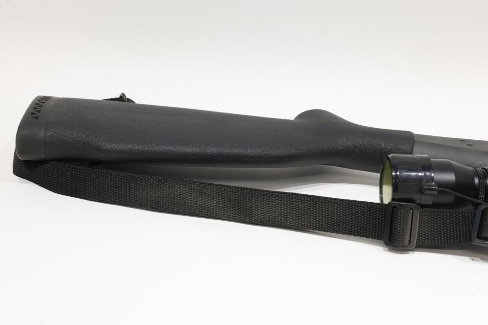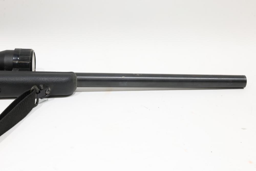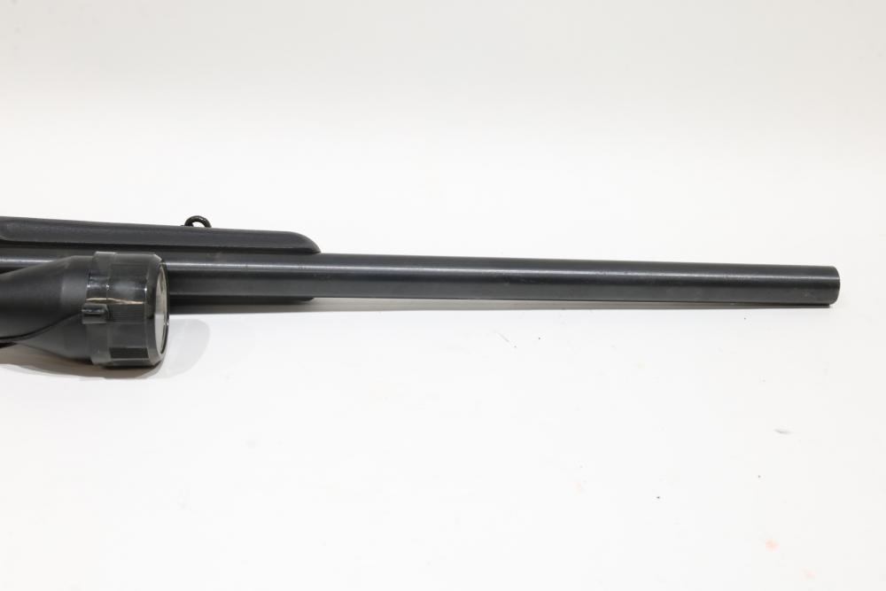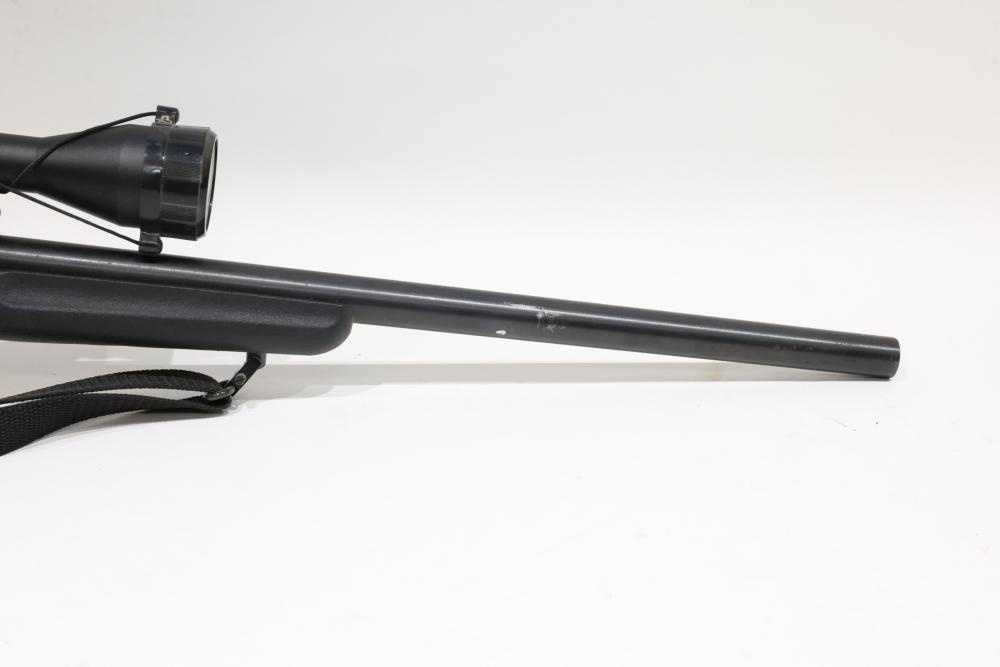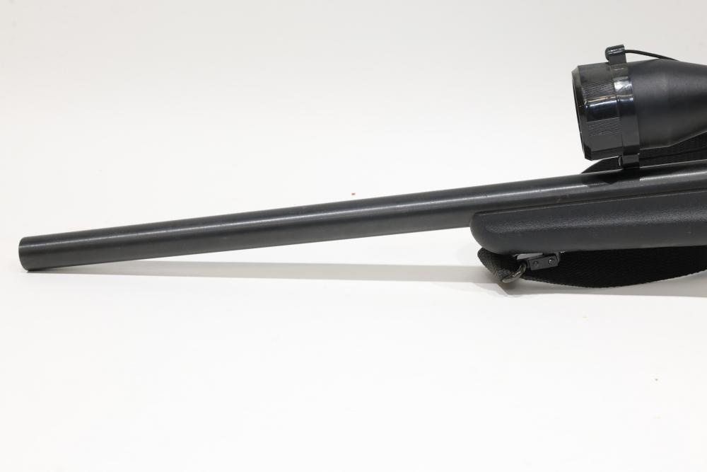 New England Firearms Sportster break-action rifle chambered in .17 HMR, featuring a black synthetic stock with rubber recoil pad and a mounted Weaver optic. Serial Number NS245896. All lots are subject to all applicable laws at the time of transfer. NOTE: Semi automatic rifles and all handguns require a license in NYS. There is a $35 transfer fee per long gun. There is a $40 transfer fee per hand gun. There is a $20 transfer fee per ammunition lot. If you fail the background check, the transfer fee still applies, and you are still required to make payment and then reconsign the lot to auction. FFL dealers are not exempt from these fees. A background check will be required for all buyers purchasing a firearm and/or ammunition. NYS charges a background check fee for all firearms and ammunition. The fee is $9 for firearms and $2.50 for ammunition. The NYS fee is per background check NOT per lot, will be collected directly by Civil Armory, and is in addition to transfer fees. All lots are subject to all applicable laws at the time of transfer. NOTE: Semi automatic rifles and all handguns require a license in NYS. There is a $35 transfer fee per long gun. There is a $40 transfer fee per hand gun. There is a $20 transfer fee per ammunition lot. If you fail the background check, the transfer fee still applies, and you are still required to make payment and then reconsign the lot to auction. FFL dealers are not exempt from these fees. A background check will be required for all buyers purchasing a firearm and/or ammunition. NYS charges a background check fee for all firearms and ammunition. The fee is $9 for firearms and $2.50 for ammunition. The NYS fee is per background check NOT per lot, will be collected directly by Civil Armory, and is in addition to transfer fees.